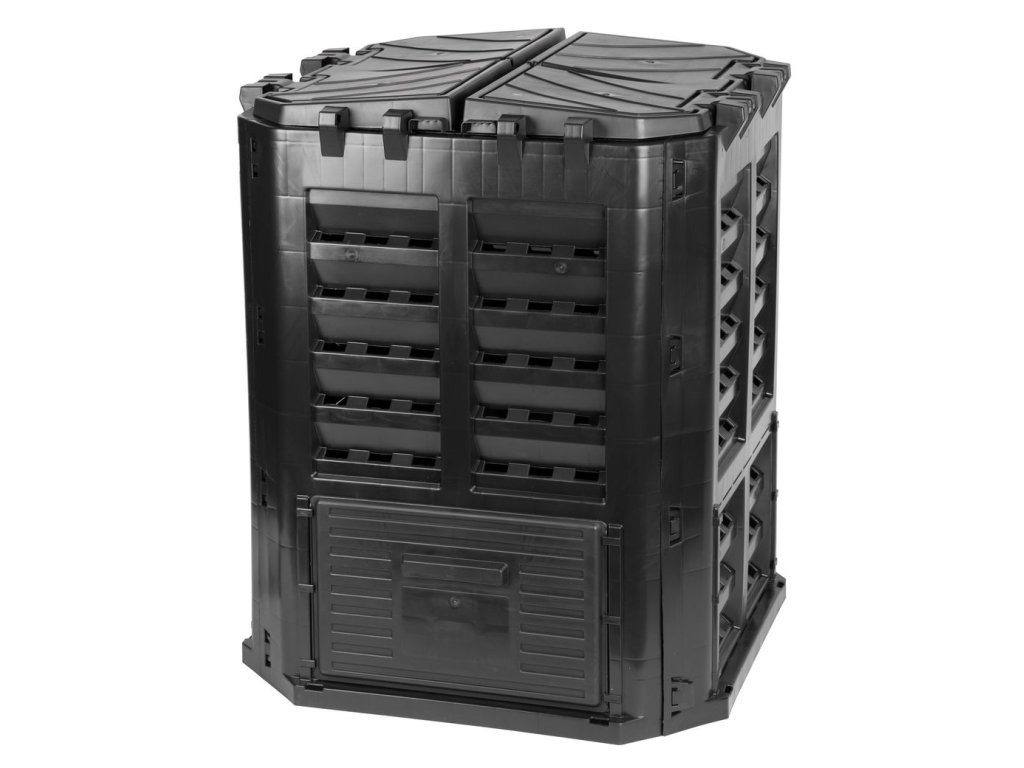Celorocný ECO kompostér - Zabezpecuje možnost vlastnej prípravy hodnotného hnojiva. - Použitie kompostéra šetrí hnojivá a náklady na likvidáciu recyklovatelného odpadu. - Špeciálny tvar zaistuje rovnomernú cirkuláciu vzduchu, umožnuje zavlažovanie kompostu a urýchluje proces rozkladu. - Jednoduchý poklop, ktorý chráni obsah pred škodcami a silným vetrom. - Pohodlná rukovät poklupu. - Odnímatelne dolné dvierka umožnujú lahké odoberanie zrelého kompostu. - Jednoduchá montáž bez použitia náradia. - Možnost zakotvenia pomocou pozemných kotiev.Rozmery: 689 x 689 x 839 mm