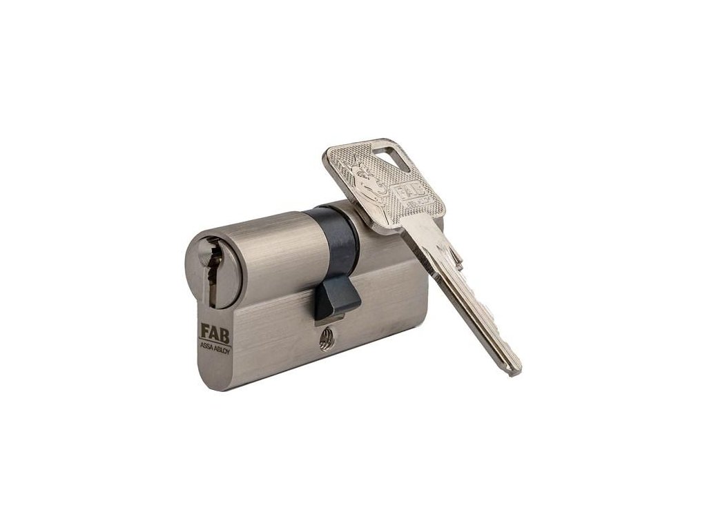Cylindrická vložka FAB je určená na dvere vyžadujúce trvale vysokú bezpečnosť zaistenia. Vhodné napríklad na vchodové dvere bytového domu, vstupné dvere, kancelárske dvere, školské dvere či na priemyselné objekty. Obsahuje 5 stavítkový uzamykací systém. Ochrana proti odvŕtaniu telesa. Patentované paracentrické profily. Materiál: mosadz, povrchová úprava matný nikel. Štandardne dodávané s 5 predĺženými oceľovými kľúčmi. Rozmer: 40+55 mm.