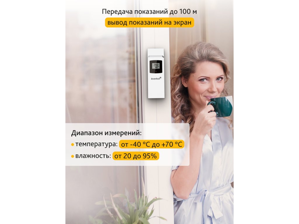 Obrazovka základne meteostanice je rozdelená do niekoľkých blokov s graficky a prehľadne zobrazenými informáciami, kde nájdete predpoveď počasia, presný čas, indikátor komfortu v miestnosti. Senzory diaľkového ovládača majú vlastné obrazovky, preto môžete výsledky vidieť nielen na obrazovke základne meteostanice, ale aj priamo v mieste merania. Maximálne a minimálne hodnoty sa ukladajú do pamäte meteostanice Levenhuk Wezzer PLUS LP50. Budík je možné si odložiť v prípade potreby o 5 minút. Meteorologickú stanicu môžete použiť aj ako stolné hodiny aj budík.