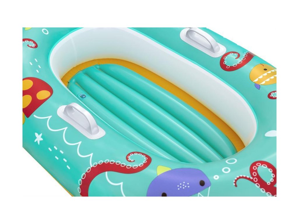 Detský nafukovací čln Bestway® Happy Crustacean je vhodný pre deti od 3 - 6 rokov. Nafukovacie dno zaisťuje väčšie pohodlie. Čln je tiež vybavený praktickými držadlami umiestnenými na bokoch. Vaše dieťa si užije slnečné dni plné zábavy na vode. Rozmery: 119x79 cm.