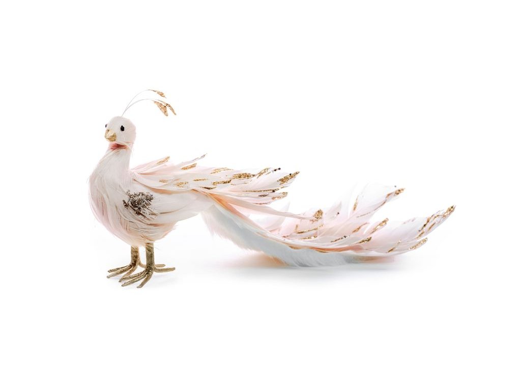 Dekorácia MagicHome Vianoce, Páv, ružový, páperový, 36x11x15 cm