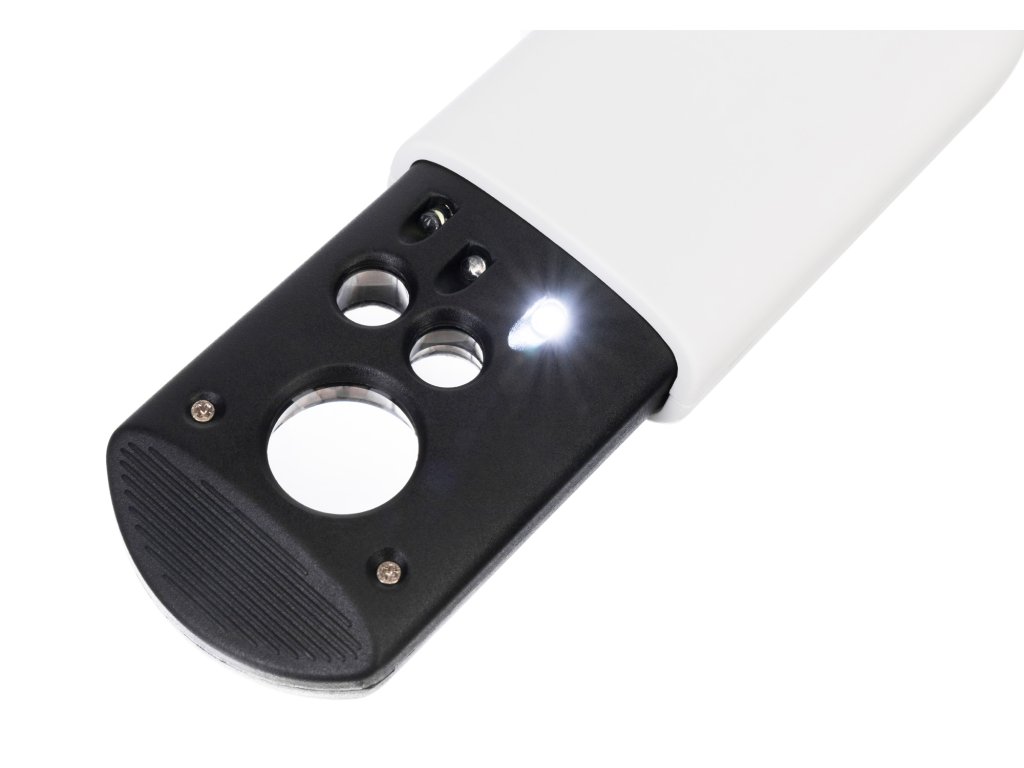 Teleskopická lupa s tromi zabudovanými šošovkami. LED a ultrafialové osvetlenie. Priblíženie: 30/35 / 55 x