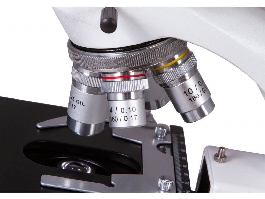 - Achromatické objektívy: 4х, 10х, 40xs, 100хs (imerzný olej) s protiplesňovým povlakom