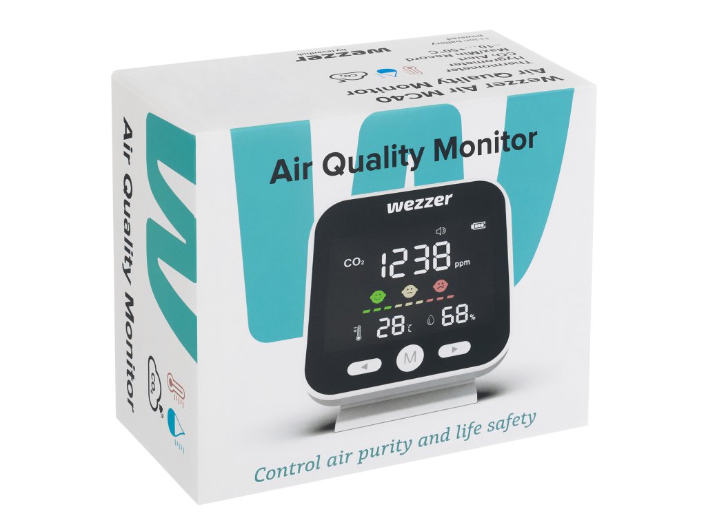 Dizajn merača kvality vzduchu Levenhuk Wezzer Air MC40 je vyrobený v štýlovom tele so zaoblenými hranami a disponuje stolovým stojanom. Telo je vyrobené z ABS plastu, ktorý je známy svojou pevnosťou a odolnosťou. Väčšiu časť predného panela tvorí podsvietený farebný LCD displej s jasnými a dobre čitateľnými číslicami a stupnicou komfortu. Merač CO2 je napájaný prostredníctvom vstavanej batérie. Na nabíjanie prístroja je potrebný AC adaptér, ktorý nie je súčasťou balenia. Napätie USB portu počítača na nabíjanie nestačí. Je možné použiť aj nabíjačku na smartfón.
