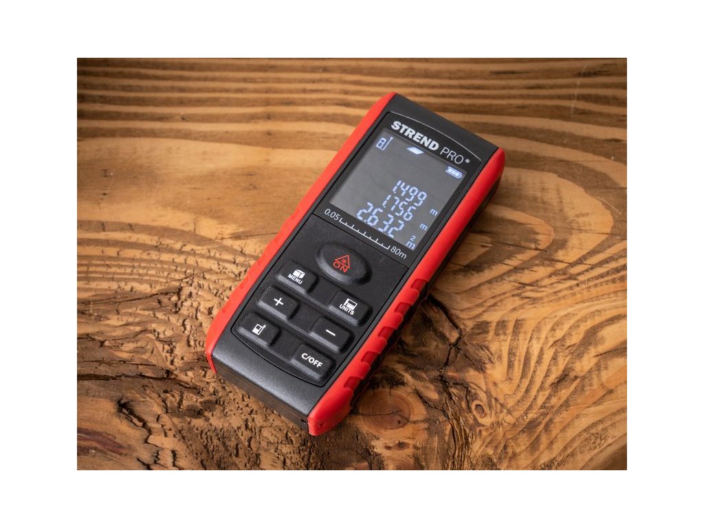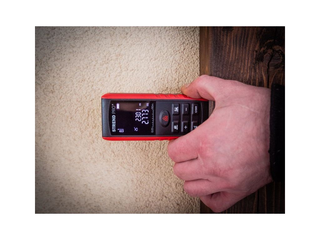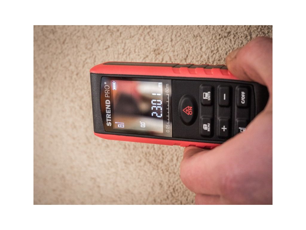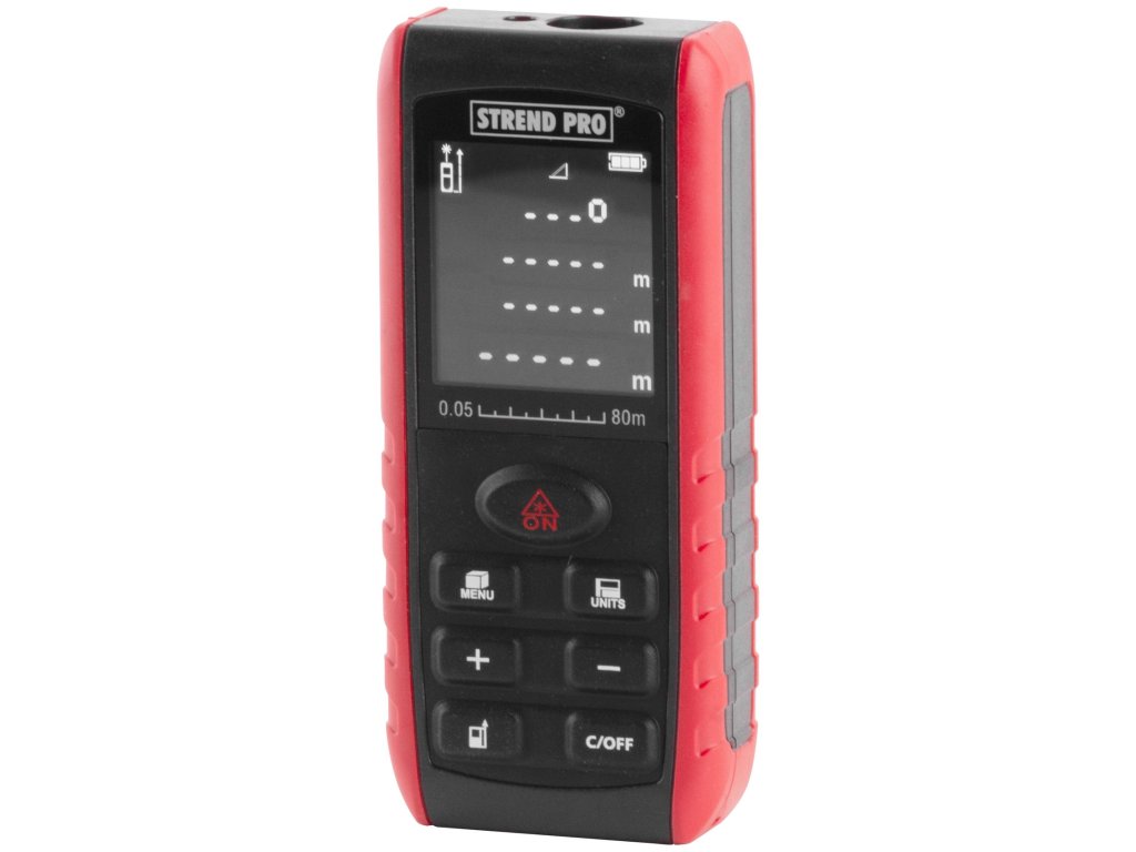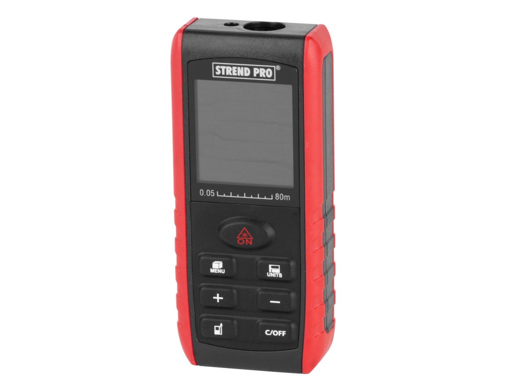 Laserový merač vzdialenosti STREND PRO DIME 80M je určený na meranie vzdialeností, diaľok, výšok, odstupov, sklonov, výpočet plôch a objemov. Ak je meranie vykonávané za nepriaznivých podmienok, napríklad jasné slnečné svetlo, meranie drsných alebo zle odrážajúcich sa povrchov, príliš vysoká alebo príliš nízka teplota prostredia, vyskytujú sa odchýlky merania. Laserový merač poskytuje merací rozsah 0.05m ~ 80m, rozlíšenie 1 mm a presnosť ± 1,5 mm. Merač sa vypne automaticky, po 180 sekundách a laser sa vypne taktiež automaticky, po 20 sekundách.