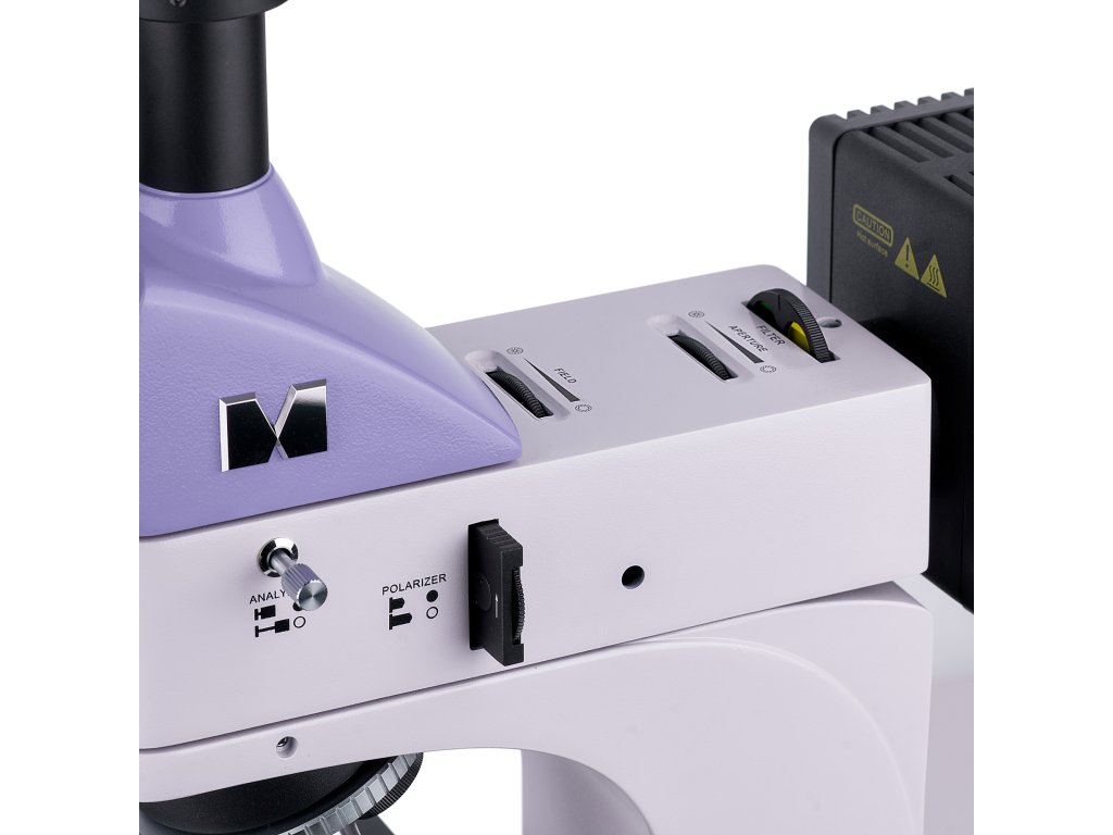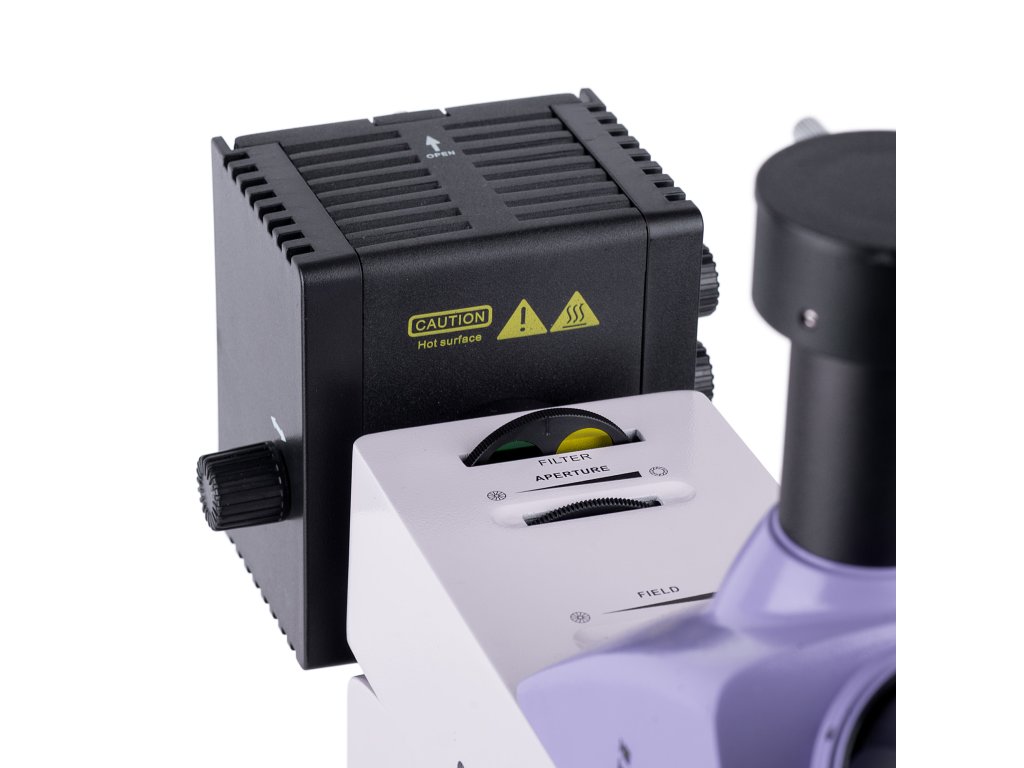 Metalurgický digitálny mikroskop MAGUS Metal D600 LCD má osvetľovacie systémy pre pozorovanie v prechádzajúcom a odrazenom svetle. Oba systémy využívajú 30 W halogénové žiarovky s nastaviteľným jasom, ktoré sú napájané zo striedavého zdroja. Halogénové žiarovky vyžarujú svetlo s teplým tónom farby, ktorá nebude zaťažovať vaše oči ani pri dlhodobej práci. Mikroskop vlastní polarizačné zariadenie pre pozorovanie v odrazenom svetle, vrátane vstavaného analyzátora a odnímateľného polarizátora. Apertúrne a poľné clony umožňujú nastavenie Köhlerovho osvetlenia. V sade sa nachádzajú aj farebné filtre. Vystrediť sa dajú aj apertúrne clony a zdroj odrazeného svetla. Systém osvetlenia prechádzajúcim svetlom využíva tradičný Abbeho kondenzor, ktorého polohu je možné nastaviť dvoma spôsobmi, a to buď vystredením alebo nastavením výšky. Kondenzor je doplnený výklopnou šošovkou, ktorá je určená pre použitie s objektívmi s malým zväčšením. Digitálny mikroskop ponúka apertúrne a poľné clony, ktoré umožňujú využívanie Köhlerovej metódy osvetlenia.