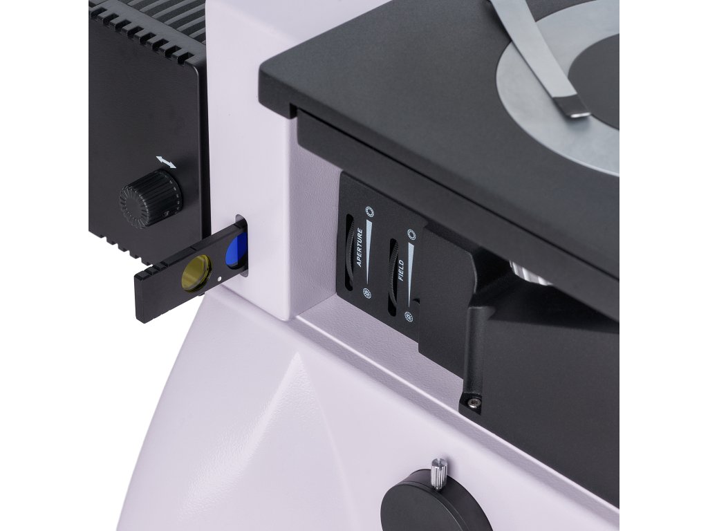 Zdrojom osvetľovacej sústavy pre pozorovanie v odrazenom svetle je 30 W halogénová žiarovka s možnosťou nastavenia jasu. Osvetľovacie teleso sa napája zo zdroja elektrického napätia. Zaisťuje dostatočný jas pre pozorovanie so všetkými objektívmi priloženými v balení pomocou techník mikroskopie vo svetlom poli alebo polarizačnej mikroskopie. Môžete si tiež nastaviť Köhlerove osvetlenie. Zdroj svetla sa dá vystrediť pozdĺž troch osí. Na zmenu farebného podania v mikroskopickej fotografii môžete použiť farebné filtre. K dispozícii je polarizačné zariadenia – analyzátor a polarizátor – ktoré sa dajú odobrať.