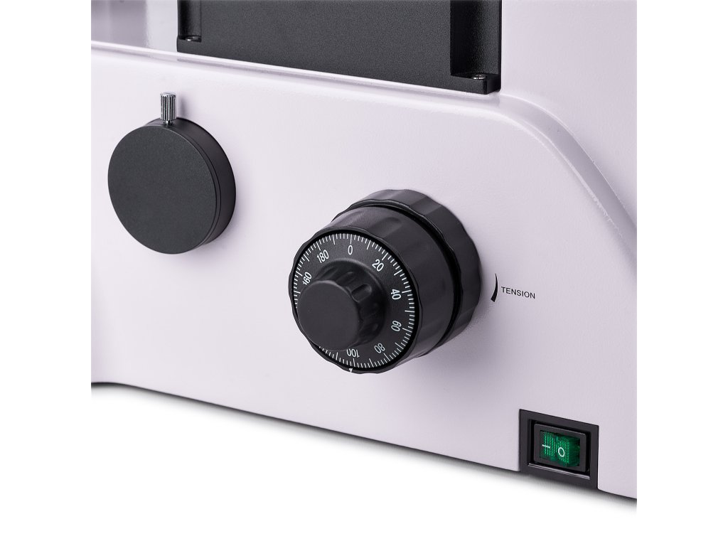 Kruhová doska pracovného stolíka s otvorom s priemerom 10 mm, 20 mm alebo 30 mm je vložená do stolíka. Vzorky sa upevňujú za pomoci držiaka vzoriek. Pracovný stolík je dostatočne veľký 242x200 mm a pohybuje sa spolu s pripevneným preparátom pozdĺž dvoch osí. Ostrosť obrazu si nastavíte prostredníctvom gombíkov pre hrubé a jemné zaostrenie. S gombíkom môžete nastaviť aj tuhosť hrubého zaostrenia a k dispozícii je aj aretačný gombík.