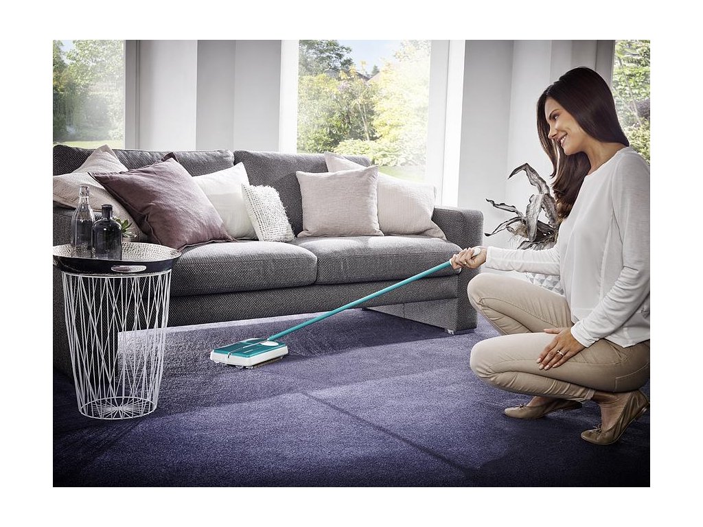 Rýchlo zametá prach, špinu, vlasy, chlpy a drobné nečistoty z kobercov, použitie bez elektrickej energie, tri otočné kefy, šírka kief 22 cm, veľký otočný gombík na regulovanie výšky, sklopná rukoväť na upratovanie pod nábytkom, 2 roky záruka.