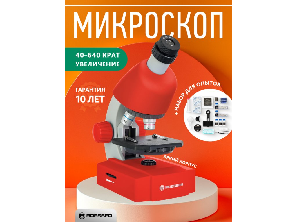 Mikroskop Bresser Junior 40x-640x, červený