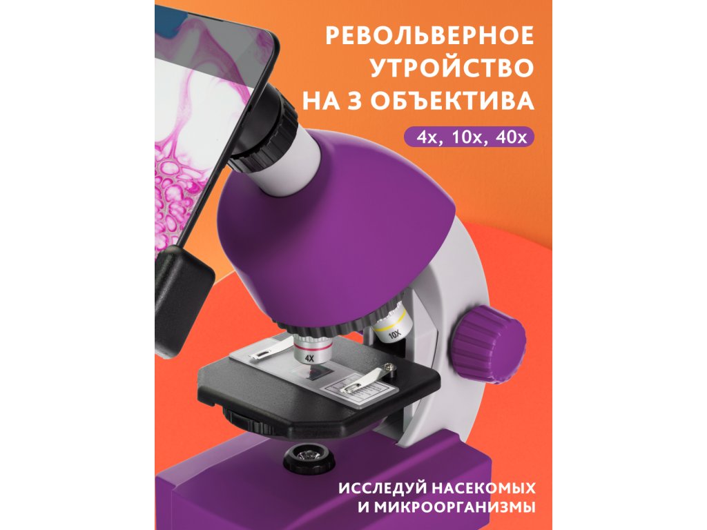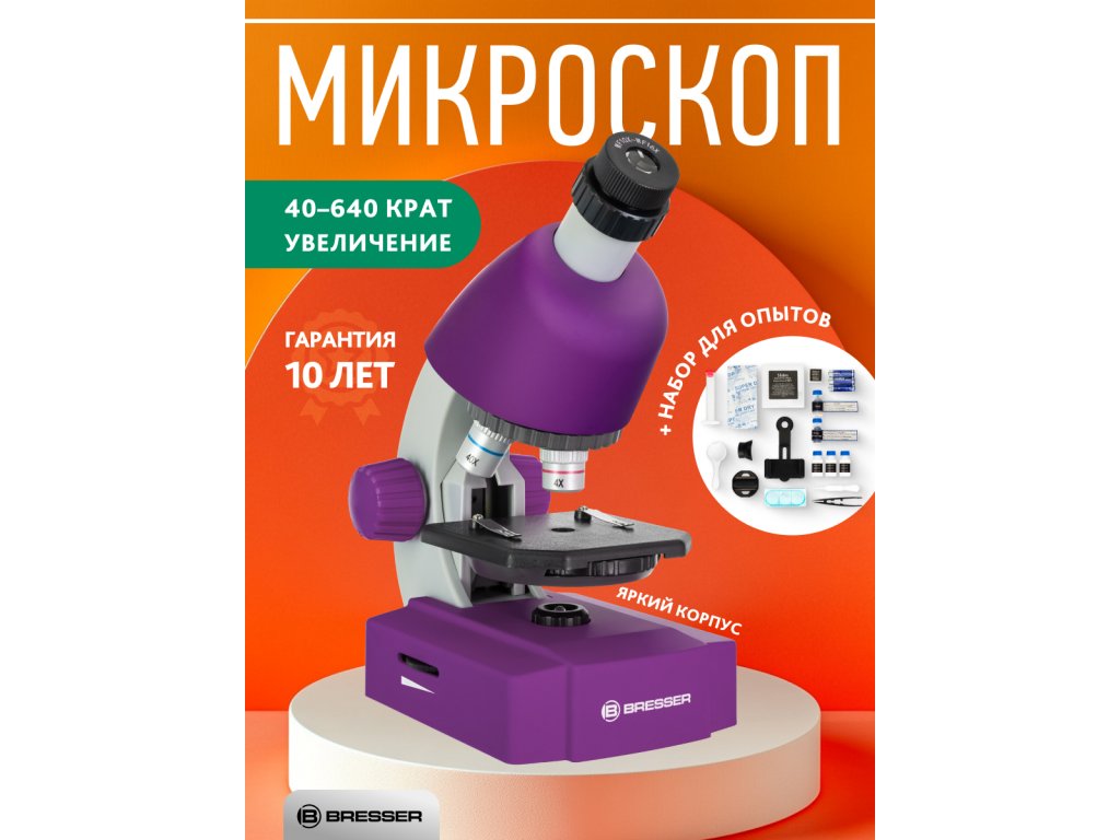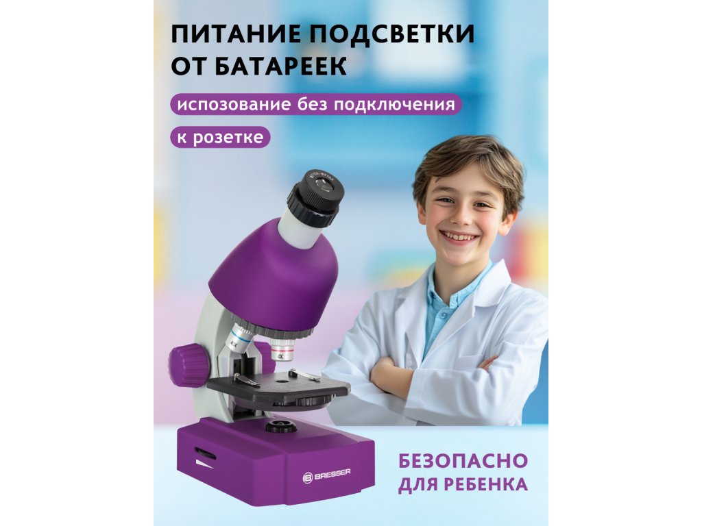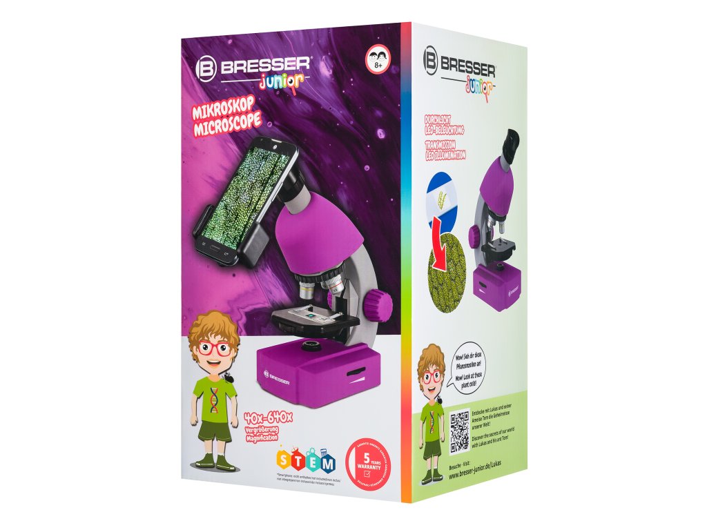 Detský mikroskop Bresser Junior 40x-640x, fialový