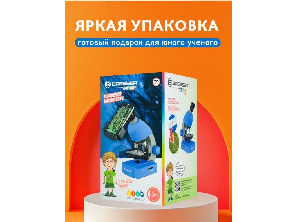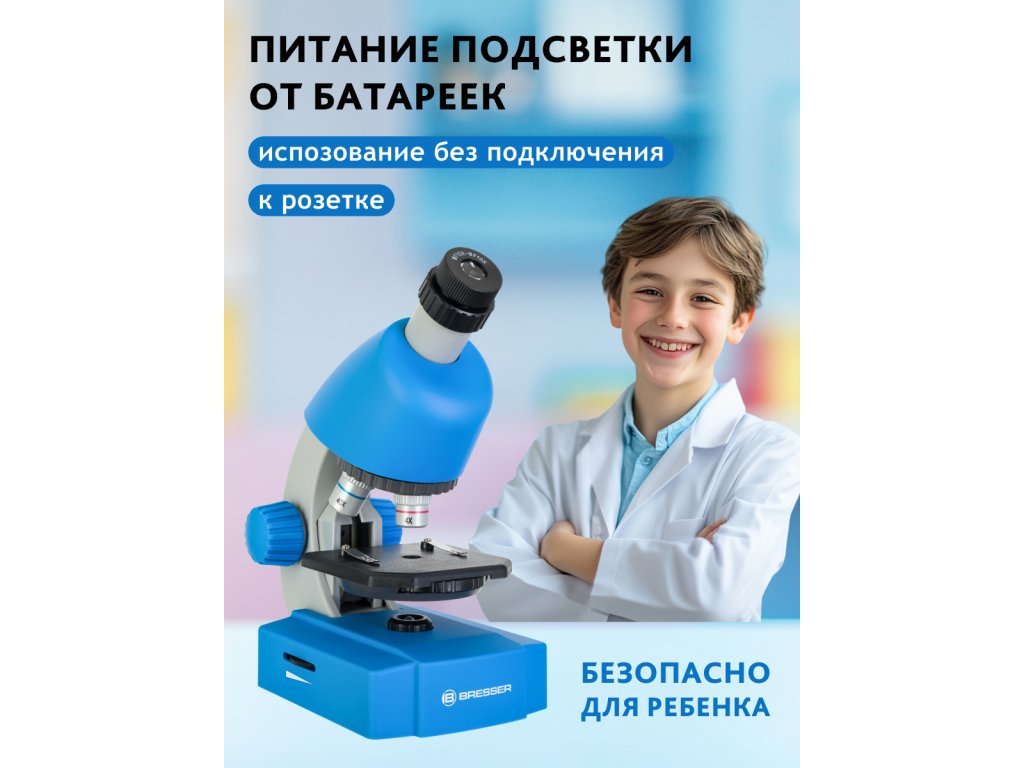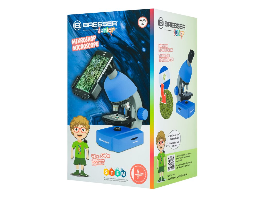 Detský mikroskop Bresser Junior 40x-640x, modrý
