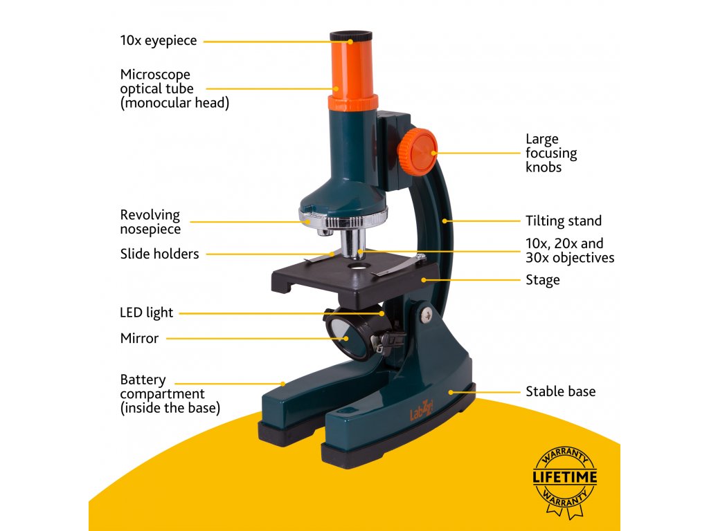 Zväčšenie: 100–300x. Súčasťou je aj experimentálna súprava.