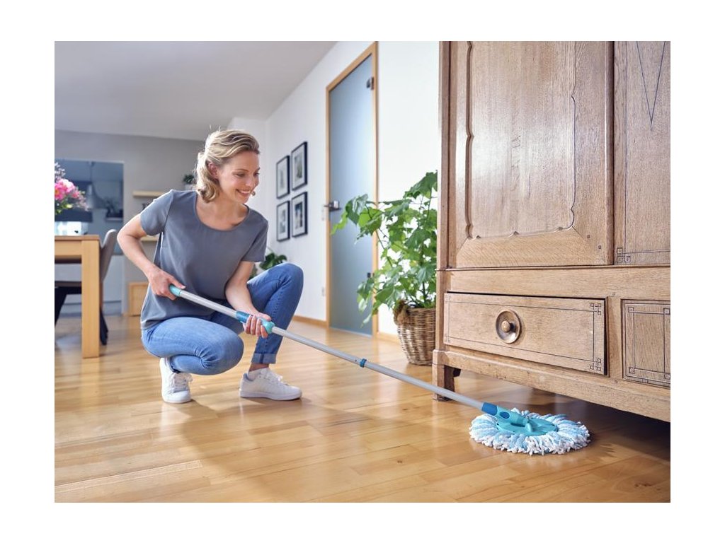 Rotačný upratovací set určený na umývanie podláh bez kontaktu rúk a špinavej vody. Ideálne na dlažbu a kamenné podlahy. Novinkou je rotačný systém umiestnený priamo v držadle, možnosť rýchleho ukončenia priamo užívateľom, nová veľká rotačná komora, ktorá sa dá jednoducho a rýchlo zasadiť do vedra, univerzálny celkový objem vedra 20l, operačný objem 6l, vedro s jedným držadlom, flexibilný rotačný kĺb. Strapce mopu z mikrovlákna pre intenzívne vstrebávanie nečistôt. Set obsahuje: mop, rotačnú komoru, 20l vedro. Nové ergonomické vedro s praktickou výlevkou Súčasťou vedra je integrovaná fixácia mopu pre ľahšiu manipuláciu a prenášanie. Možnosť nákupu náhradnej hlavice. Záruka 3 roky.