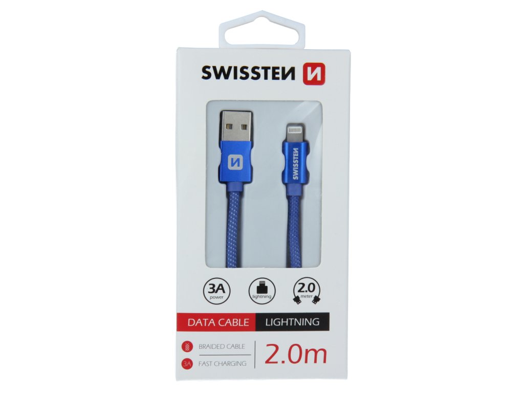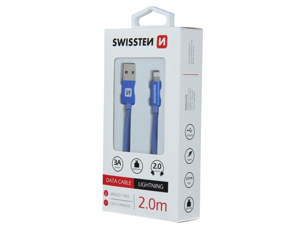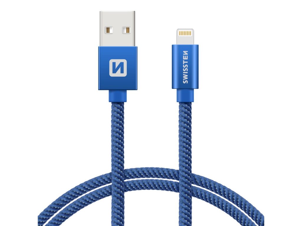 Textilný dátový kábel Swissten USB / LIGHTNING 2,0 M - modrý