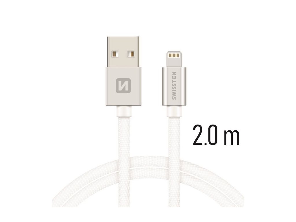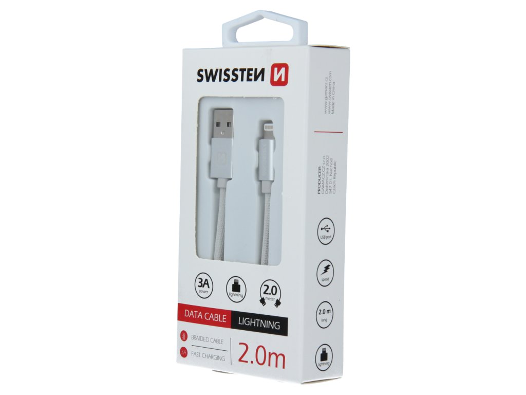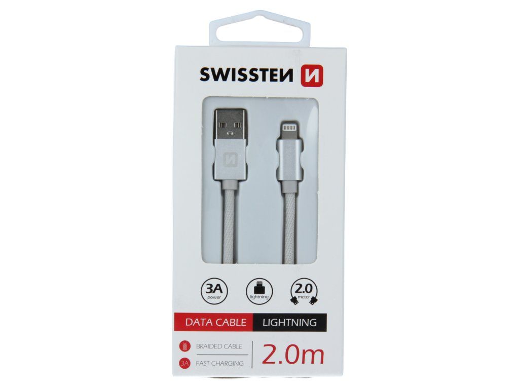 Dátový kábel Swissten USB/Lightning s kvalitným textilným opletením a kovovými krytmi konektorov. Kovový kryt konektora je odolnejší proti mechanickému poškodeniu ako bežné plastové kryty konektorov. Keďže kábel má dĺžku 2,0 m je ideálny pre použitie napr. do nákladných áut, do áut pre rodiny alebo pre ľudí, ktorí často dobíjajú a majú ďaleko zásuvku a počas nabíjania potrebujete volať. Dátový kábel je zosilnený a preto dokáže preniesť väčší prúd (až 3A) a taktiež zvládne rýchly prenos dát 480 Mb/s. Životnosť kábla je cca 10 000 ohybov. Balené v blistri Swissten.