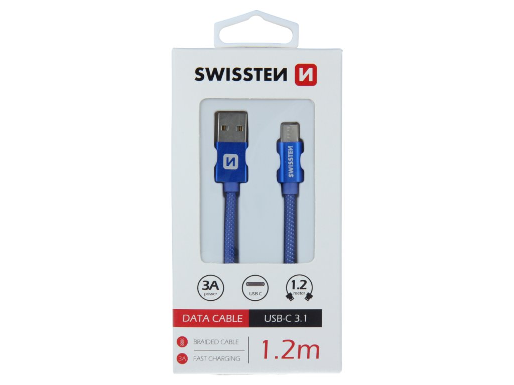 Textilný dátový kábel Swissten USB / USB-C 1,2 M - modrý