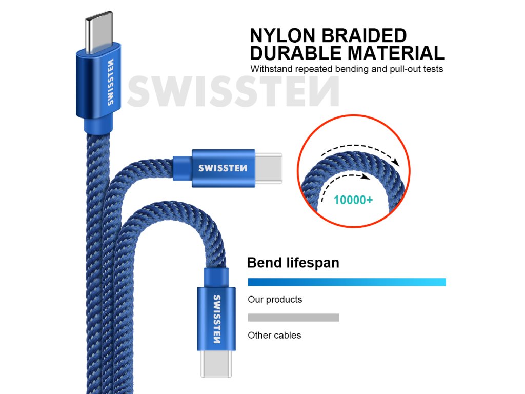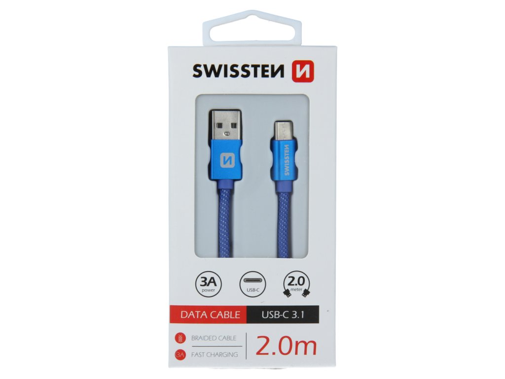 Textilný dátový kábel Swissten USB / USB-C 2,0 M - modrý