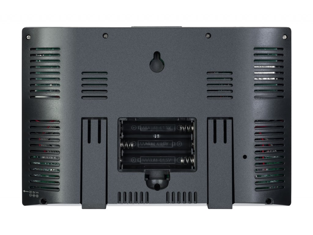 The main module of the weather station can be set up on a table or mounted on a wall. The screen is LED backlit for use at night or during the day in low light conditions. The remote sensor requires AA batteries (not included). A solar panel is used as a backup power source in clear weather. The base station can operate on AC power or on AAA batteries.