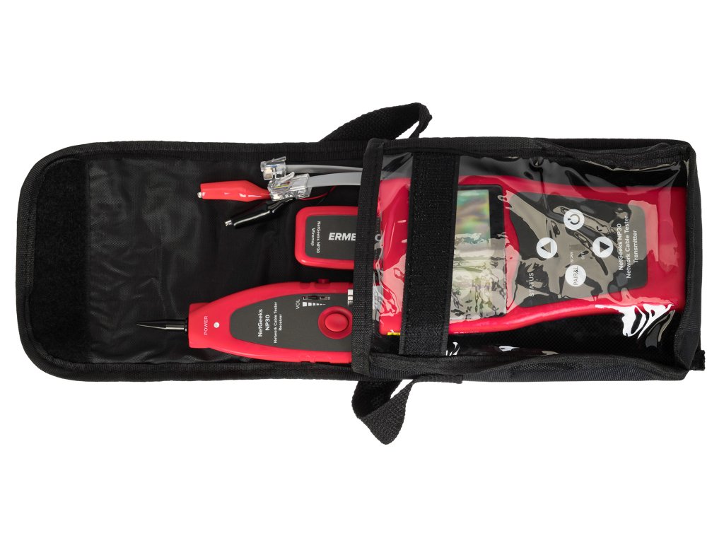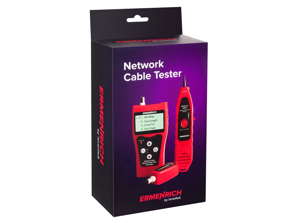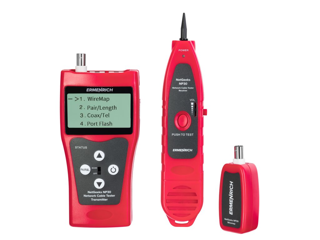 Detektor sieťových káblov Ermenrich NetGeeks NP30 je ideálny na kontrolu sieťových káblov, lokalizáciu otvorených obvodov a meranie dĺžky kábla. Stane sa skvelým pomocníkom pre tých, ktorí inštalujú, starajú sa a udržiavajú počítačové siete a telefónne linky, ale určite sa zíde aj v každej domácnosti. Súčasťou balenia je vysielač, prijímač, diaľková jednotka a ďalšie príslušenstvo. Vysielač a prijímač sú napájané prostredníctvom 9V batérie.