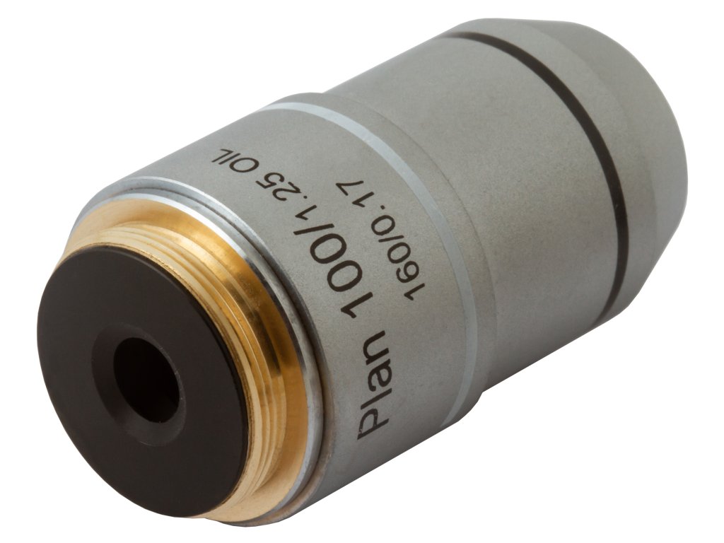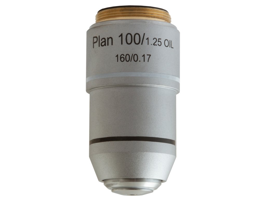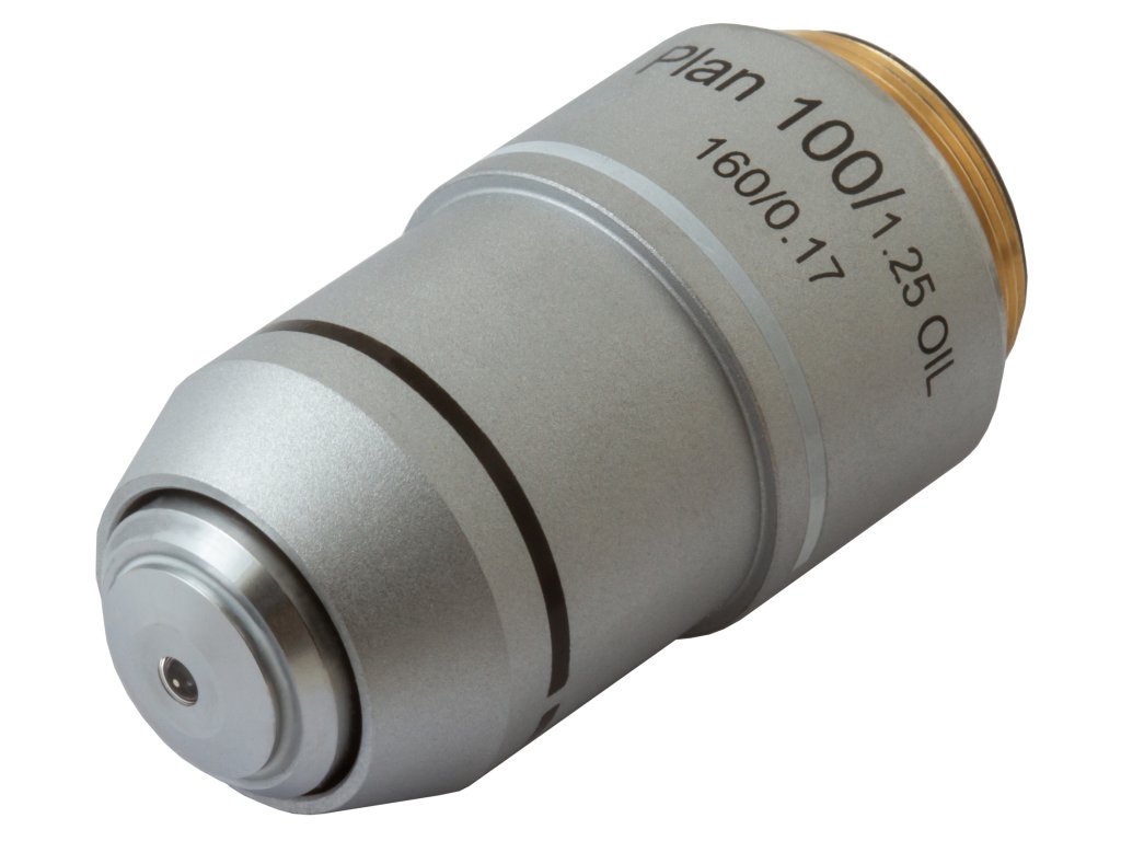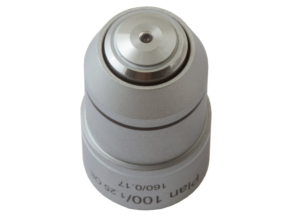 Pružinový rám. Pre olejovú imerziu. Zväčšenie: 100x. Apertúra: 1,25.