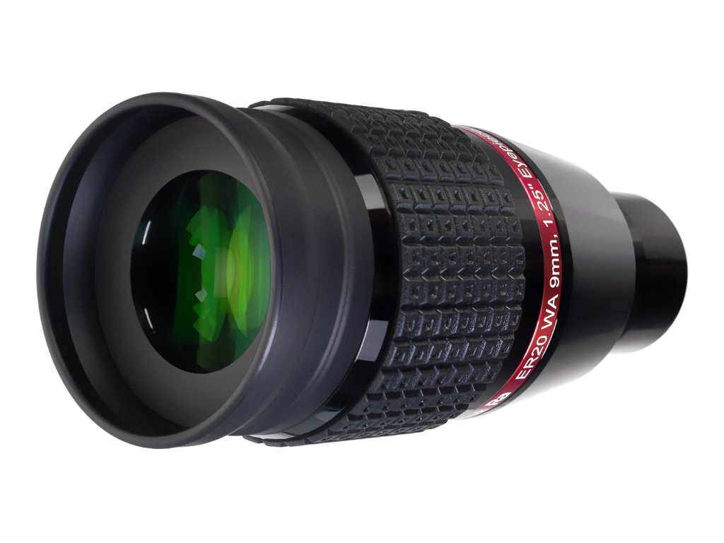 Tento okulár Levenhuk Ra ER20 WA 9 mm má priemer tubusu 1,25“ má 68 ° zdanlivé zorné pole a dlhý očný reliéf, ktorý vám umožní vykonávať pozorovania v celom zornom poli. Všetky optické prvky sú vyrobené z potiahnuté skla s niekoľkonásobnou vrstvou. Kvalita obrazu je dobrá. Umožňuje pozorovať jemné detaily samostatných astronomických objektov. V strede zorného poľa nie sú žiadne skreslenia. Okulár je možné použiť so šošovkou objektívu Barlow s 2x zväčšením.