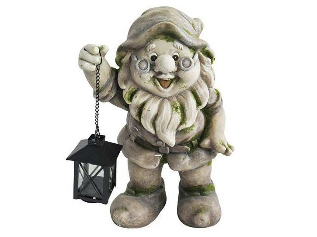 Dekorácia MagicHome Gecco, Trpaslík s lampášikom, magnesia, 24x21x36 cm