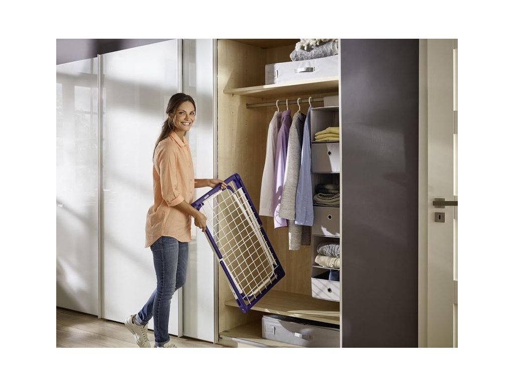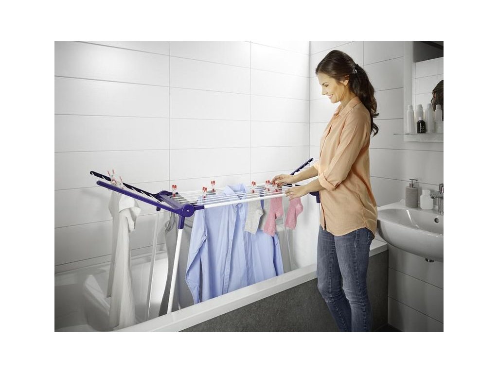 Stabilný sušiak na bielizeň s výklopnými bočnicami od spoločnosti LEIFHEIT má pevnú konštrukciu s 12 m sušiacej plochy, so šírkou len 43 cm. Sušiak so sklopnými bočnicami možno používať v práčovni a je ideálny na použitie v interiéri aj exteriéri, všetky diely sušiaka sú odolné voči korózii. Vysoké závesné steny zabezpečujú veľa priestoru a stabilitu pri vešaní bielizne. Záruka je 5 rokov.