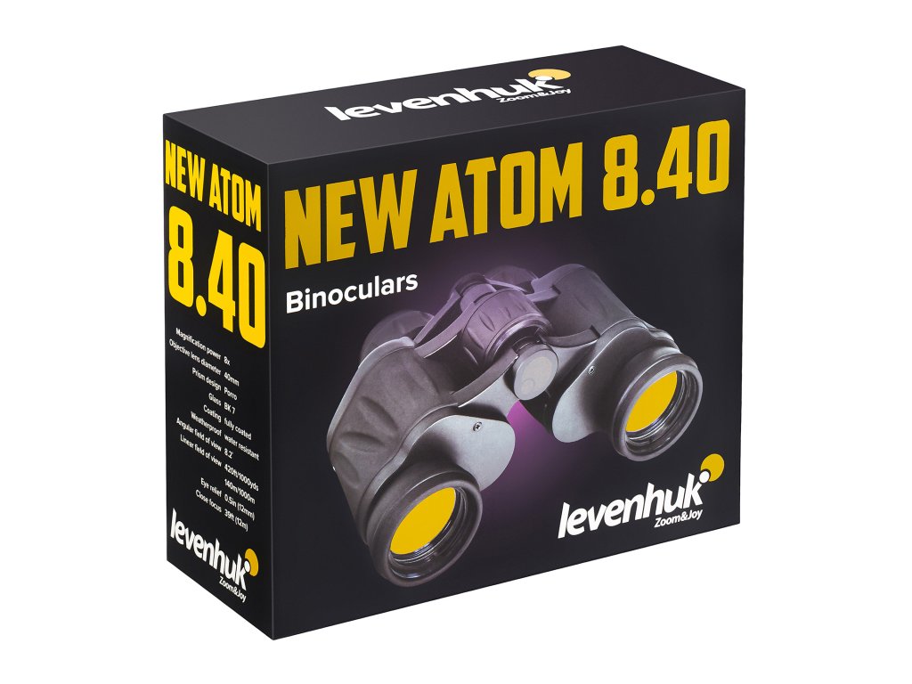 Ďalekohľad Levenhuk New Atom 8x40 sa dodáva so základným príslušenstvom pre pohodlné používanie: ochrannými krytkami okulárov a objektívov, popruhom, čistiacou handričkou z mikrovlákna na optiku a úložným puzdrom.