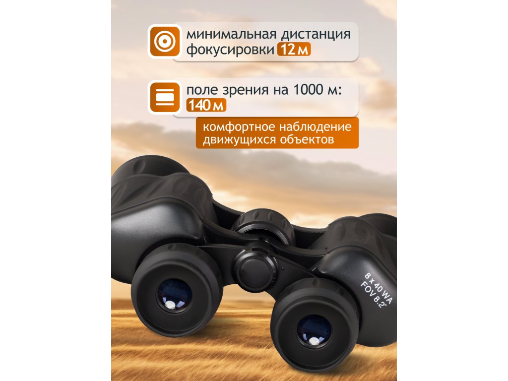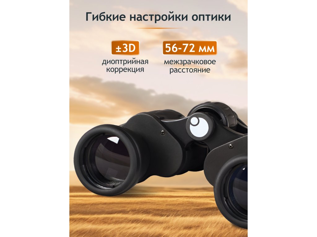Jednou zo silných stránok tohto modelu, vzhľadom na jeho zväčšenie, je široké zorné pole (140 m na 1 000 m) a skutočný zorný uhol (8,2°). Minimálna zaostrovacia vzdialenosť je štandardných 12 m pre optiku tejto triedy. Zaostrovanie sa nastavuje pomocou veľkého, centrálne umiestneného zaostrovacieho kolieska s pohodlným pogumovaným povrchom a plynulým chodom. Medzipupilárna vzdialenosť je možné nastaviť medzi 56 mm a 72 mm, aby vyhovovala väčšine používateľov. Dioptrická korekcia je k dispozícii v rozsahu ±3D. Ďalekohľad je vybavený adaptérom pre statív (adaptér sa predáva samostatne), čo je veľmi užitočné pri dlhodobých stacionárnych pozorovaniach.