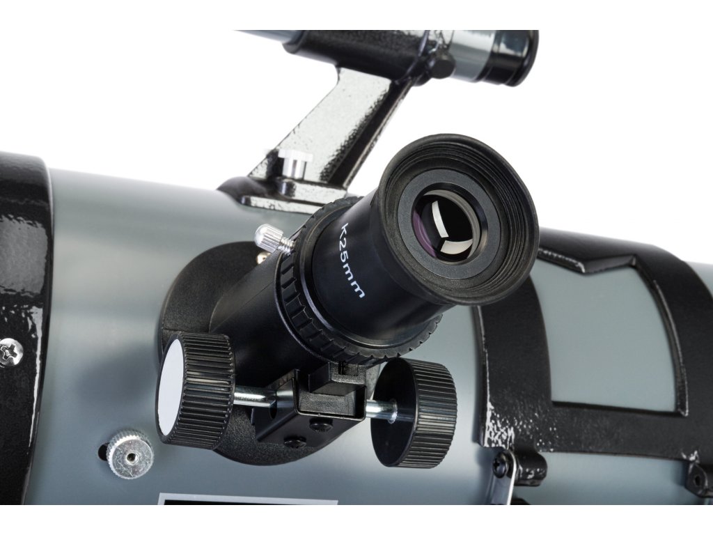 Newtonov reflektor. Apertura: 114 mm. Ohnisková vzdialenosť: 500 mm