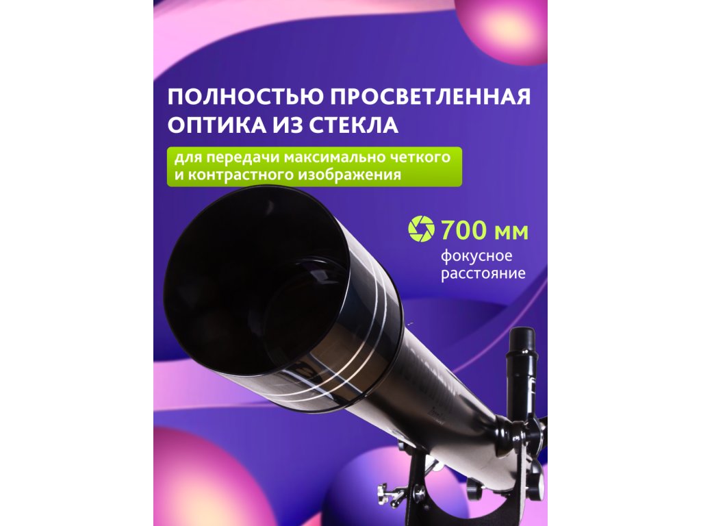 Refraktor. Apertura: 60 mm. Ohnisková vzdialenosť: 700 mm