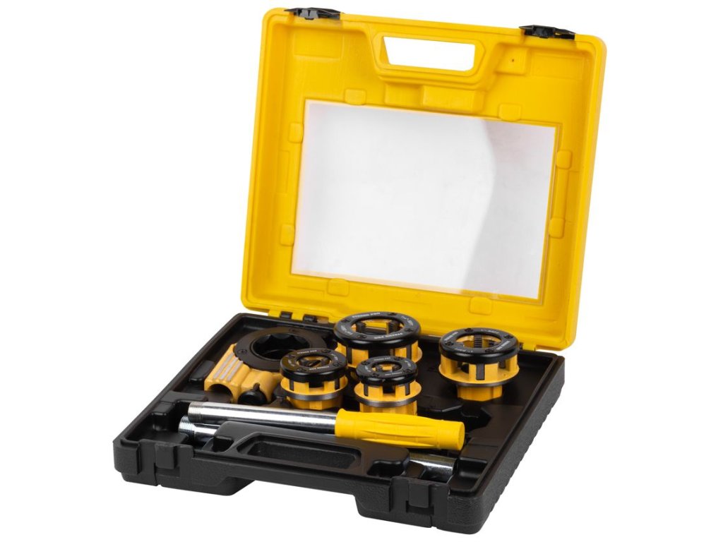 6 Dielna sada závitnic Strend Pro by nemala chýbať vo výbave profesionálnych remeselníkov, ale aj domácich kutilov. Sada je určená na rezanie závitov a obsahuje hlavice (1/2", 3/4", 1", 1-1/4"), rukoväť, nadstavec na rukoväť a račňovú hlavu.