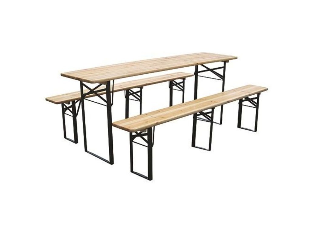 Pivný set je praktickým doplnkom pre grilovačky a pod. Set tvoria dve lavice na sedenie a jeden stôl. Spodné konštrukčné časti sú vyrobené z kovu, takže je zaistená potrebná stabilita. Výhodou lavíc je možnosť zloženia nôh. Set tak zaberá minimum priestoru a je veľmi jednoducho skladovateľný. Úžitkové časti setu sú vyrobené z dreva a sú pokryté ochrannou prírodnou farbou. Povrch nevyžaduje špeciálne ošetrenia, je ľahký na udržiavanie a čistenie. Rozmery stola sú 200 x 50 x 77 cm a poskytuje nosnosť 100 kg. Rozmery jednej lavice sú 200 x 25 x 47 cm a nosnosť je 200 kg.