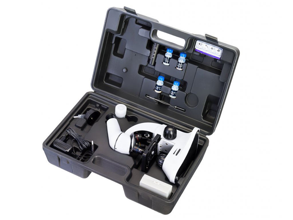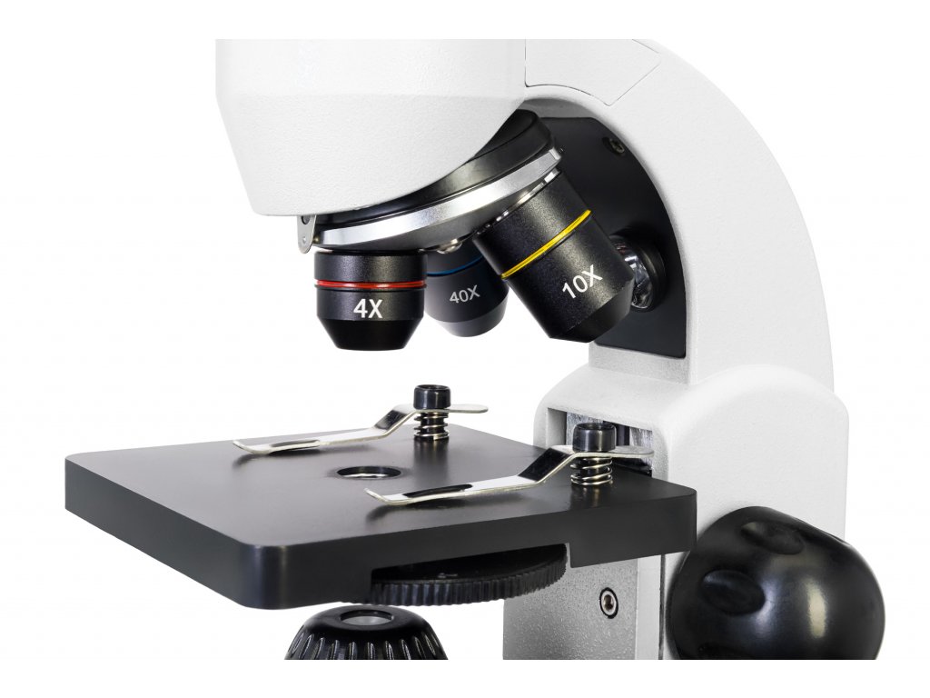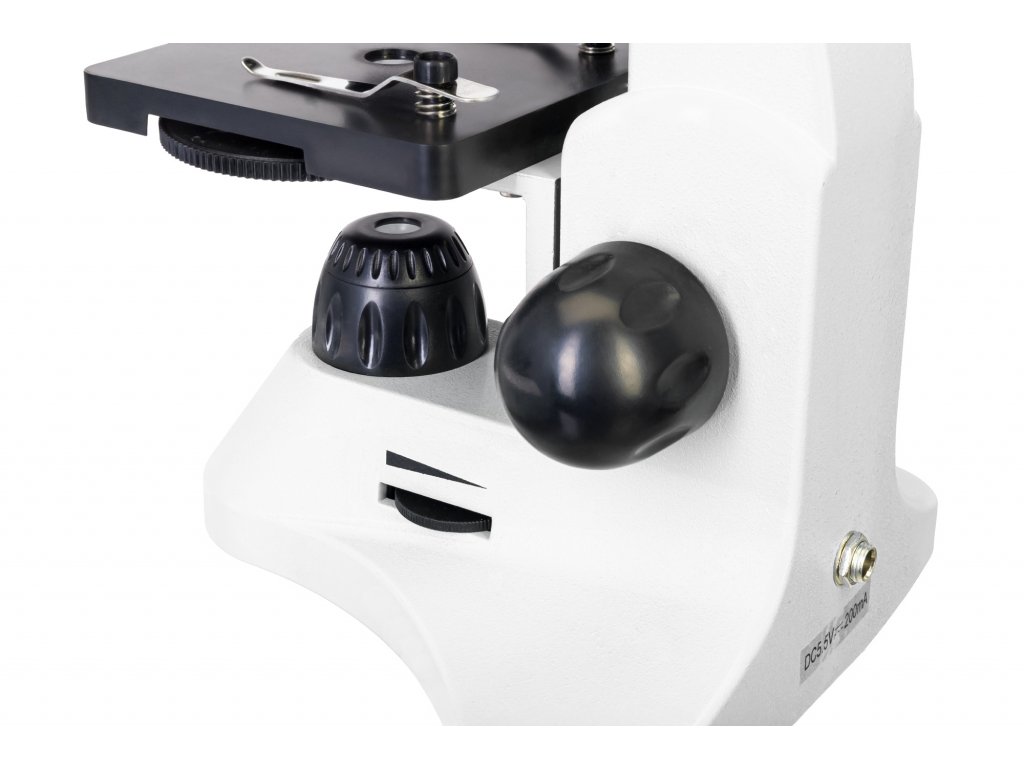 Tento biologický mikroskop disponuje kombinovaným LED osvetlením s reguláciou jasu, takže si môžete nastaviť optimálnu úroveň osvetlenia podľa vašich potrieb. Spodné osvetlenie slúži na pozorovanie transparentných preparátov ako sú plátky rastlín či kryštáliky soli alebo cukru. Horné osvetlenie je určené na pozorovanie nepriehľadných preparátov ako sú mince či papier. Môžete pozorovať aj polopriehľadné preparáty pri použití oboch osvetlení súčasne. Telo optického mikroskopu je vyrobené z odolného plastu, vďaka ktorému je mikroskop ľahký a odolný voči náhodným mechanickým otrasom. Optický mikroskop je možné využívať buď v exteriéri alebo v interiéri, nakoľko sa napája buď z elektrickej siete alebo prostredníctvom batérií. Stavba mikroskopu je dotvorená pracovným stolíkom s rozmermi 90x90 mm a so svorkami pre pohodlné a pevné uchopenie a pohybovanie s mikroskopickými preparátmi.