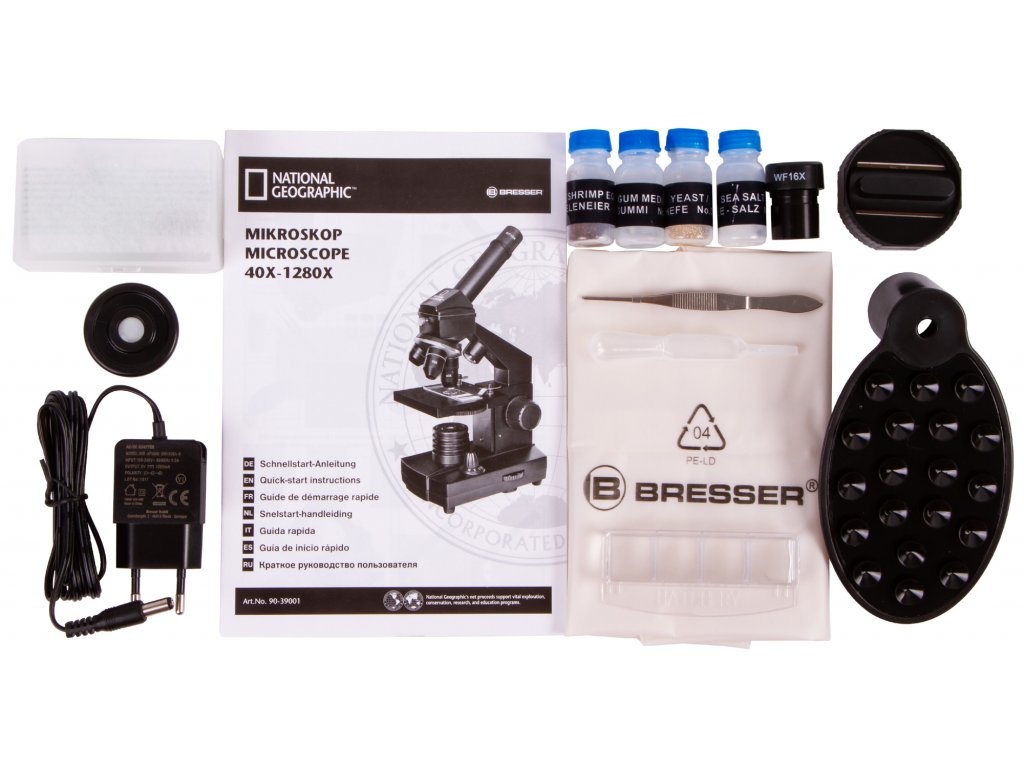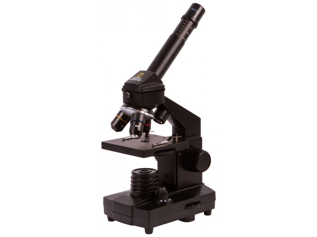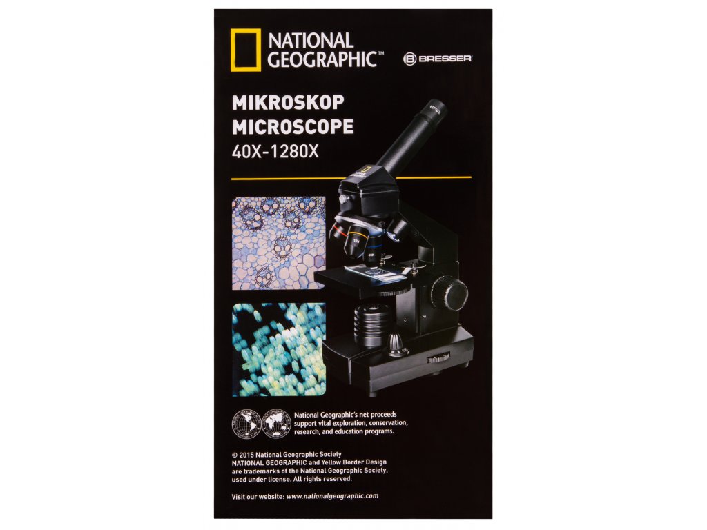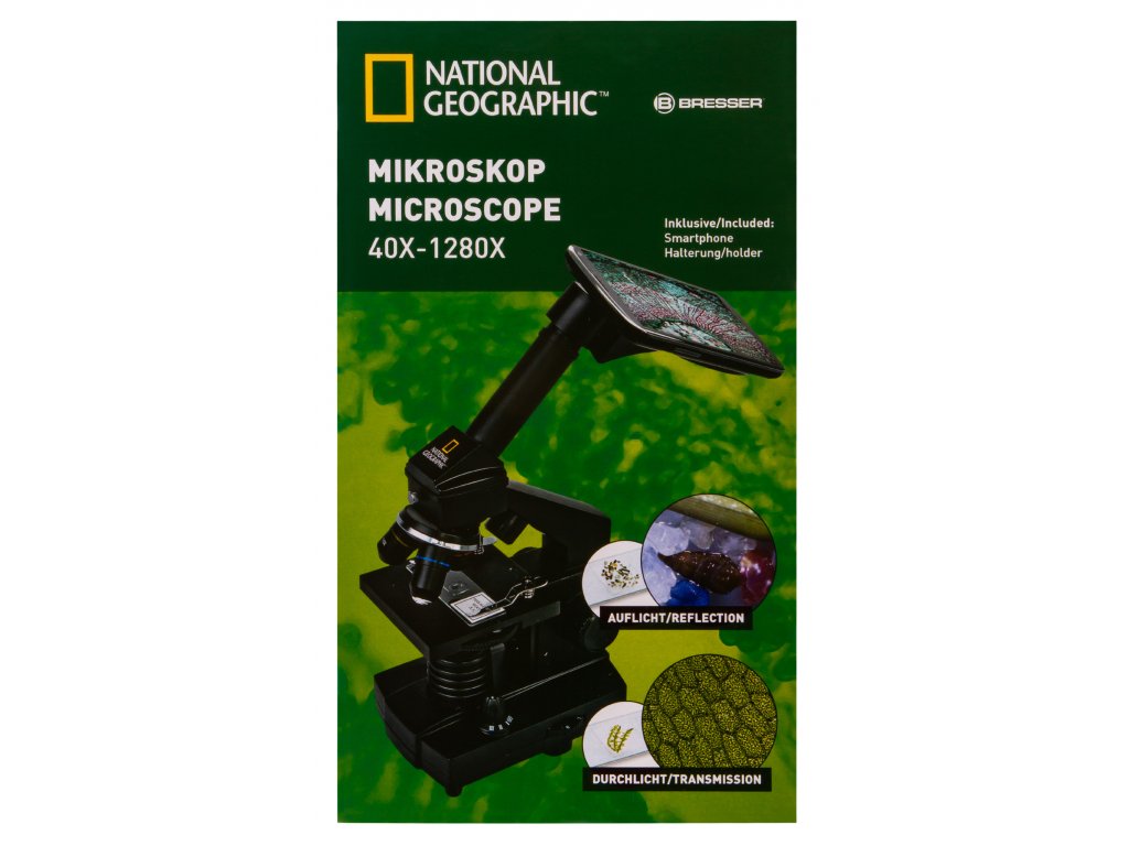 Biologický mikroskop. Zväčšenie 40x-1280x.Mikroskop Bresser National Geographic 40-1280x je biologický mikroskop, ktorý je určený najmä pre začiatočníkov, ale nesklame ani skúsenejších biológov. Disponuje širokým rozsahom zväčšenia v rozmedzí od 40x do 1280x. Zloženie optického mikroskopu Bresser National Geographic 40-1280x zahŕňa otočnú hlavicu a kombinované osvetlenie, ktoré umožňuje pozorovanie priehľadných aj nepriehľadných vzoriek pomocou prenášaného a odrazeného svetla.