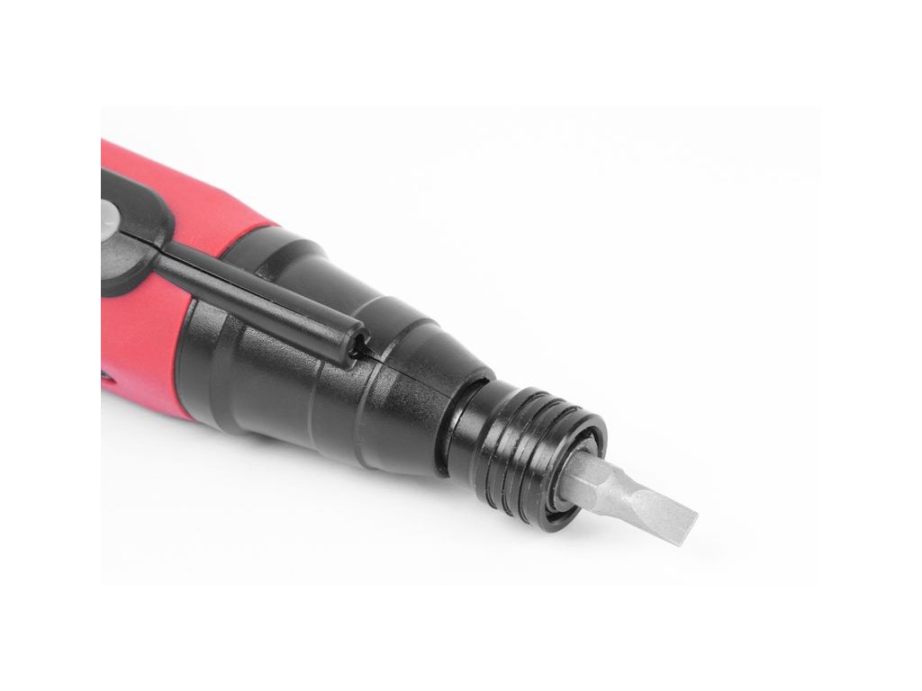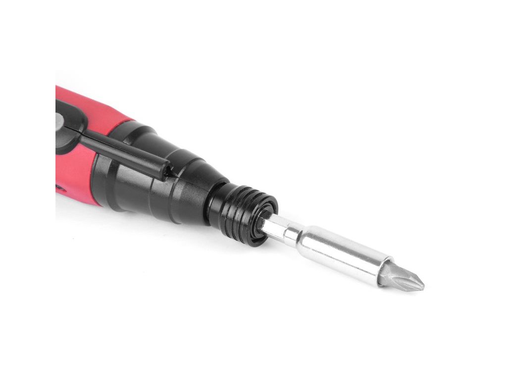 Mini akumulátorový skrutkovač Strend Pro NPT-SDD3.6V je šikovný pomocník, ktorého oceníte v každej domácnosti. Je určený na uťahovanie a uvoľňovanie skrutiek a matíc. Vďaka malej veľkosti 15 x 5 cm ho môžete nosiť stále vo vrecku pri sebe. Váži iba 0,16 kg. Vretenový zámok umožňuje použiť ho aj manuálne bez akumulátorového pohonu. Výhodou je nabíjanie cez micro USB cez konektor na boku a malá vstavaná batéria, ktorú netreba vyberať. Nabíjanie signalizuje LED dióda. Pod ňou sa nachádzajú 2 gombíky, ktorími prepínate smer otáčania na uťahovanie alebo povoľovanie. Praktické je aj LED svetlo vďaka čomu uvidíte skrutky aj v ťažšie prístupných miestach. Do otvoru typu HEX 1/4 jednoduchým vsunutím upnete buď obojstranný bit alebo magnetický držiak bitov. Najpoužívanejšie bity (PH1, PH2, PH3, PL3, PL4, PL5, T20, T25, T30, H3, H4, H5) v počte kusov 12 sú súčasťou balenia.