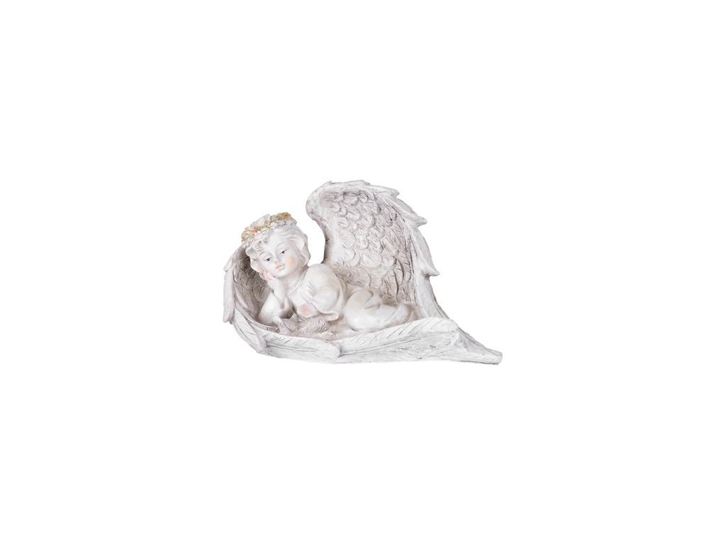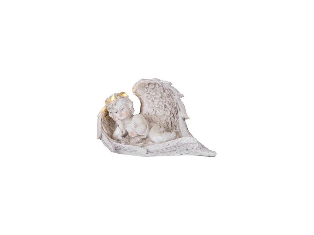 Dekorácia MagicHome, Anjel v krídlach, polyresin, na hrob, solar, 24,5x12,5x14,5 cm