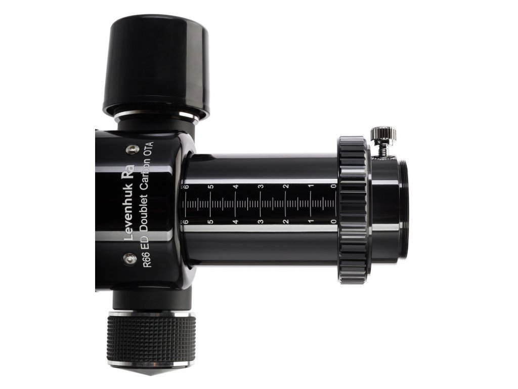 Optika ďalekohľadu Levenhuk Ra R66 ED Doublet Carbon OTA je vyrobená zo skla s veľmi nízkou disperziou, čo zaručuje, že obraz je bez chromatických aberácií, čo je nedostatok pri väčšine refraktorov, vrátane achromatických. Optika účinne znižuje chromatické aberácie, najmä sekundárne a sférické. Výsledkom tejto vlastnosti je perfektná kvalita obrazu aj pri vysokom zväčšení. Vďaka zabudovanému dvojrýchlostnému okulárovému výťahu Crayford je zaostrovanie presné a plynulé.