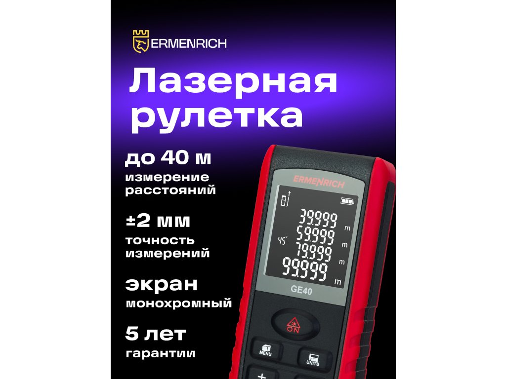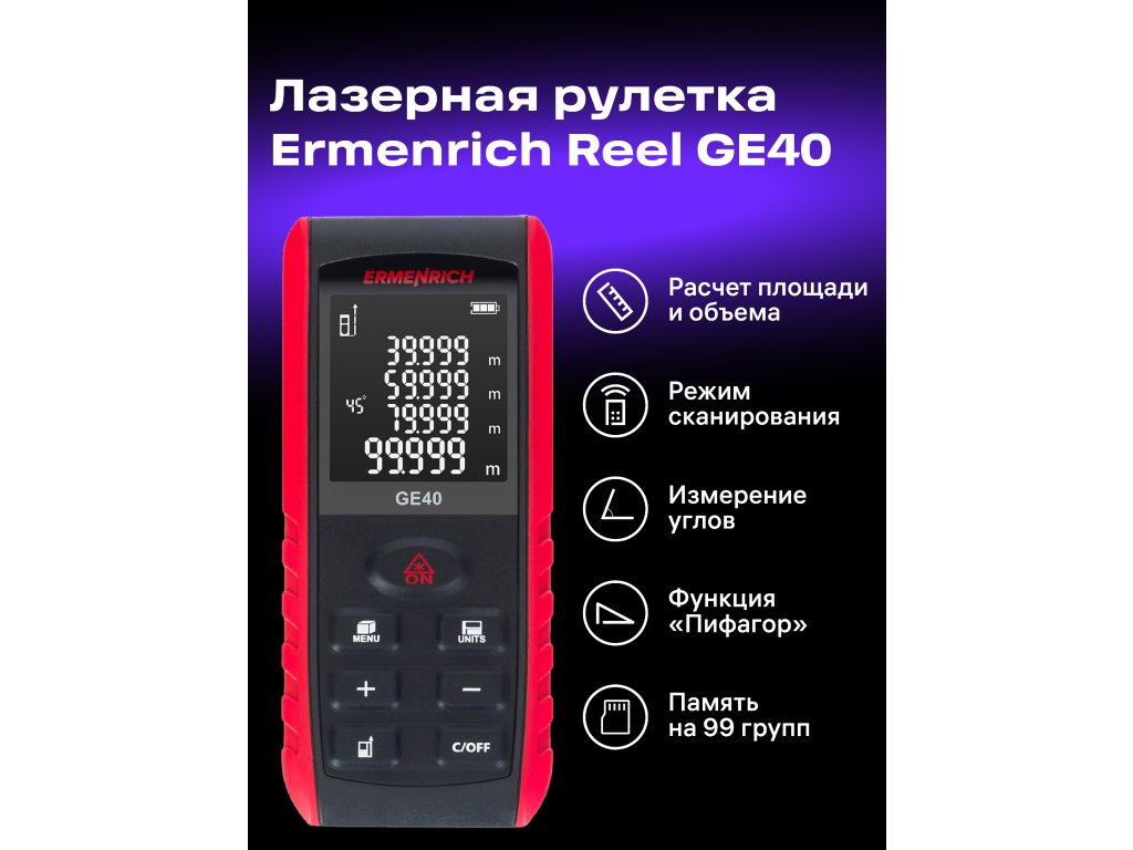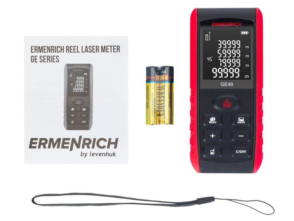 Merač laserový Ermenrich Reel GE40 je multifunkčný a praktický prístroj vhodný na stavebné, inžinierske a renovačné práce. Môžete ním merať vzdialenosti až do 40 metrov a vypočítať objem, plochu a uhly. Funkciu Pytagorovej vety oceníte, ak budete potrebovať vykonávať merania za sťažených podmienok, pretože vám pomôže vypočítať vzdialenosť z medziľahlých meraní.