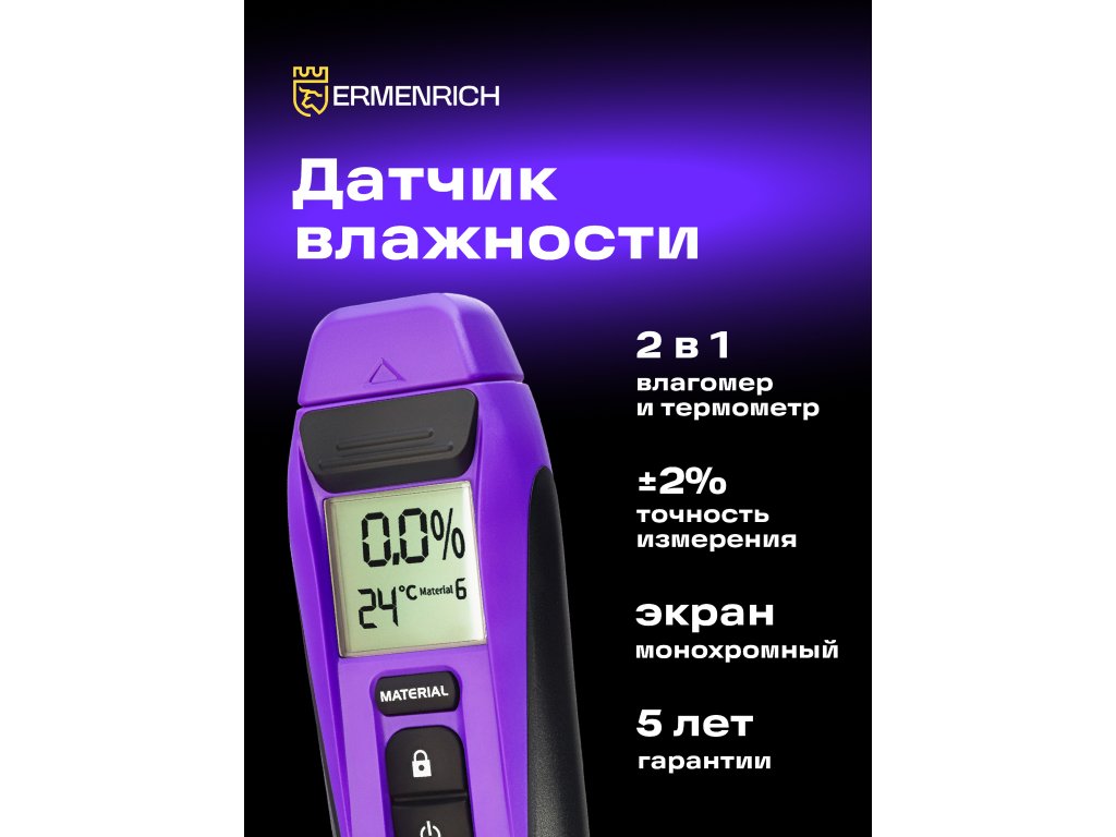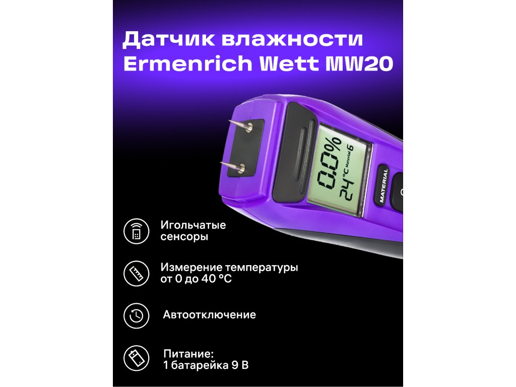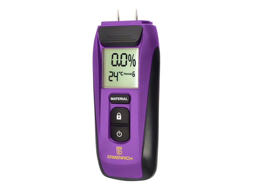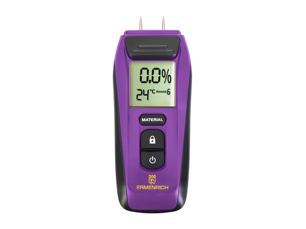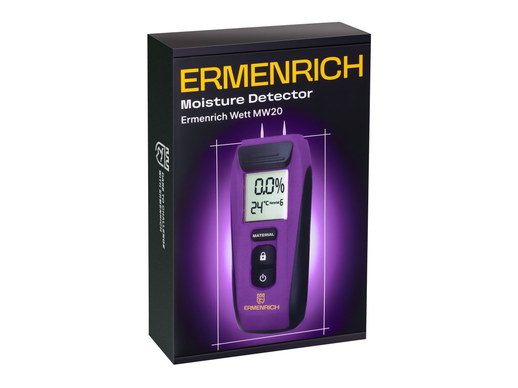 The Ermenrich MW20 is a portable moisture meter or moisture detector. It can quickly measure the moisture level of different materials: wood, cardboard, bamboo, bricks, plaster, screed, or mortar. It is an indispensable tool in construction, carpentry, furniture making, and woodworking, and it is also useful in everyday life, e.g., for renovation work.