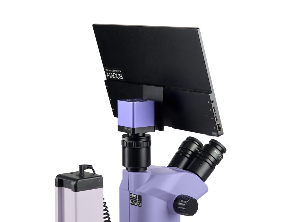 The monitor connects to a microscope-mounted camera to display a real-time image. It is compatible with MAGUS HDMI cameras operating in Full HD resolution.