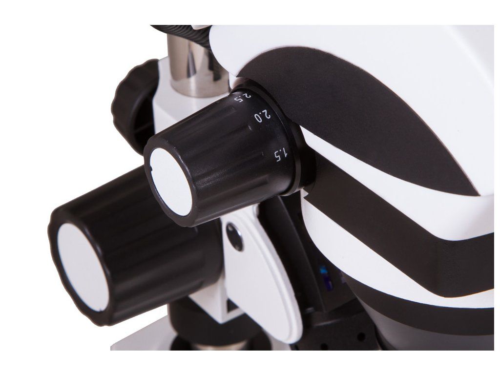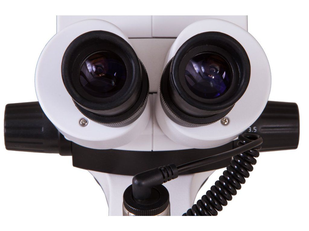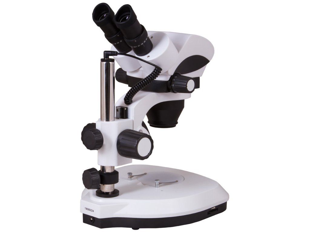Zloženie svetelného mikroskopu tvorí binokulárna otáčacia hlavica v rozsahu 360° a náklonom 45°, stereo objektív s možnosťou zväčšenia 0,7x - 4,5x. Ďalej je to pár výmenných širokouhlých okulárov WF10x s pogumovanými očnicami, ktorý prináša zväčšenie 7x až 45x. Stereoskopický mikroskop disponuje očným reliéfom a dioptrickou korekciou
