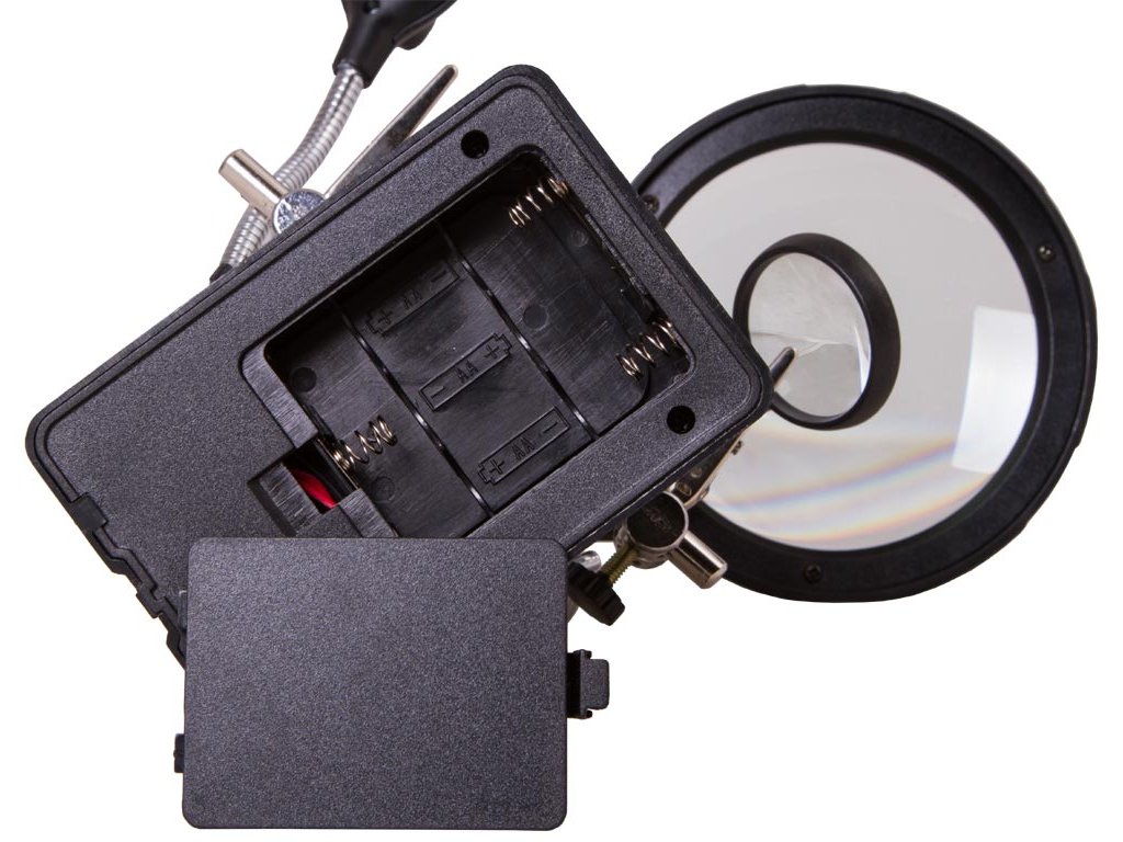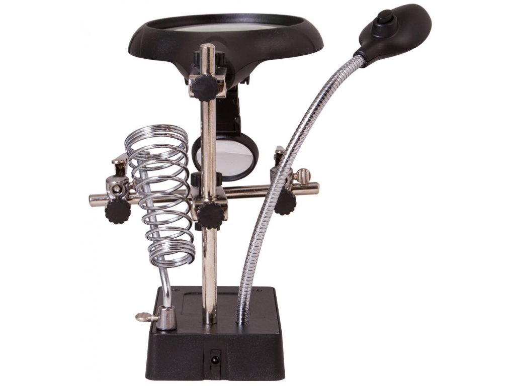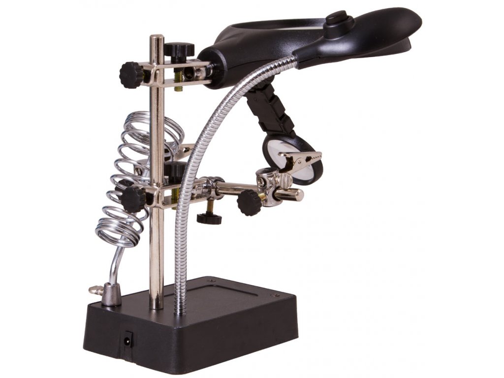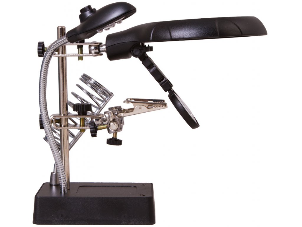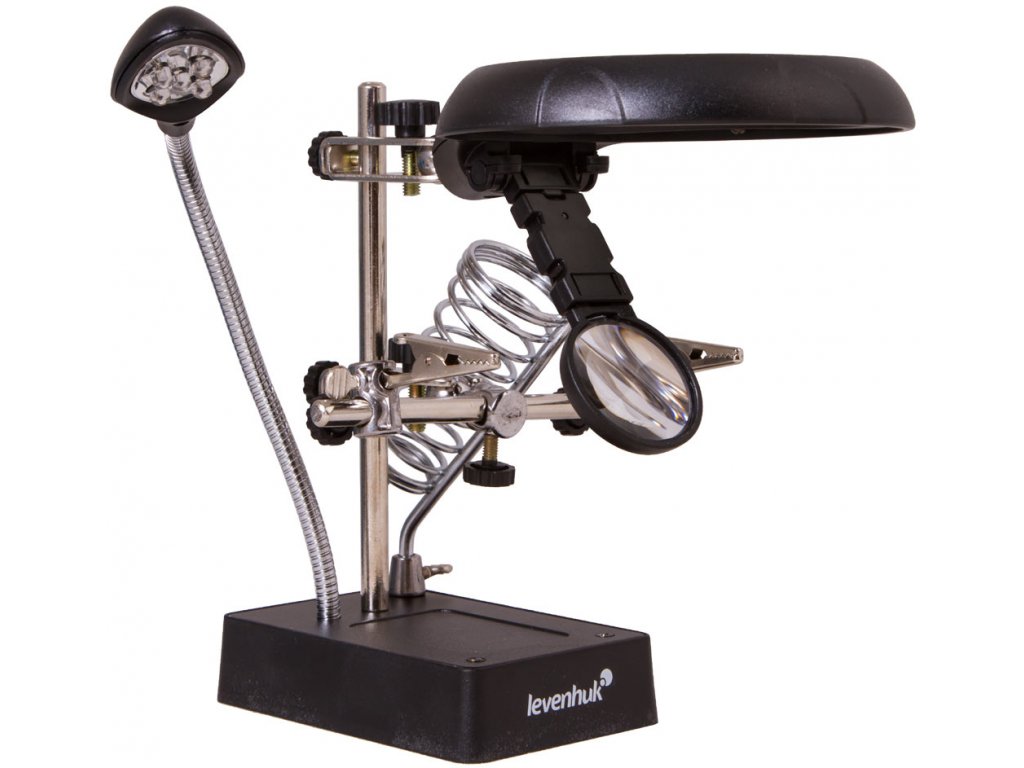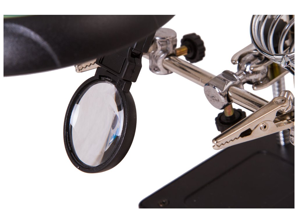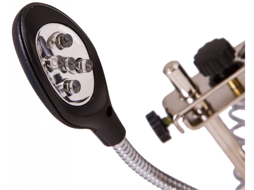 Pomocou dvoch šošoviek s priemerom 90 mm a 34 mm, môžete dosiahnuť až 10-násobné zväčšenie. Obe šošovky sú upevnené na zvislom stojane a vzdialenosť medzi nimi a pozorovaným objektom možno ľahko a pohodlne nastaviť, čo zjednoduší vašu prácu pri ktorej sa budete napokon cítiť komfortne. Osvetlenie na báze technológie LED, je umiestnené na ohybnom krku, čo umožňuje nasmerovať svetlo presne na požadovanú oblasť a tým docielite najlepšie výsledky pri práci. Osvetlenie vytvára 5 svetelných diód ktoré sú napájané sieťovým adaptérom (je súčasťou dodávky) alebo troma batériami AA (nutné zakúpiť samostatne).