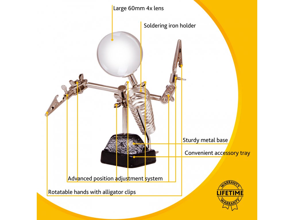 Šošovka tejto stolnej lupy, je vyrobená z optického plastu a vďaka tomu je obraz zväčšeného predmetu dokonale jasný a ostrý. Odolné kovové telo stojana, je zárukou dlhej životnosti. Totižto všetky lupy v tejto rade, disponujú držiakmi na bezpečné upevnenie predmetu.