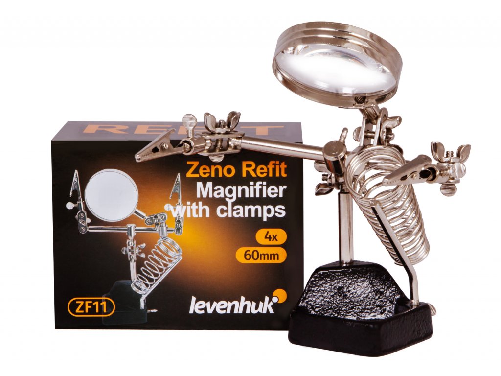 Stolná lupa Levenhuk Zeno Refit ZF11 so 4-násobným zväčšením je vhodná pre použitie pri oprave hodiniek / šperkov, elektronických súčastí, pri spájkovaní a pri lakovaní drobných plôch. Lupa je vyvinutá pre používanie amatérom i profesionálom. So stolovou lupou vďaka jej praktickej konštrukcii, uvidíte každý detail a tak sa vaša práca stane precíznou. Vďaka tomu môžete pohodlne prácu vykonávať oboma rukami.