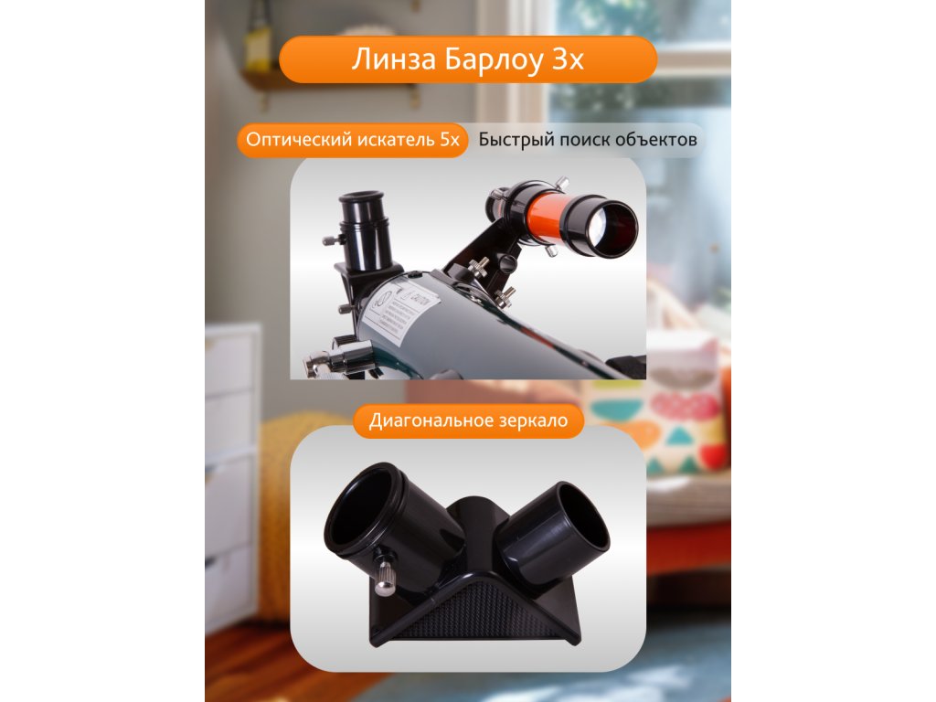 Refraktor. Priemer šošoviek objektívu: 60 mm. Ohnisková vzdialenosť: 700 mm.