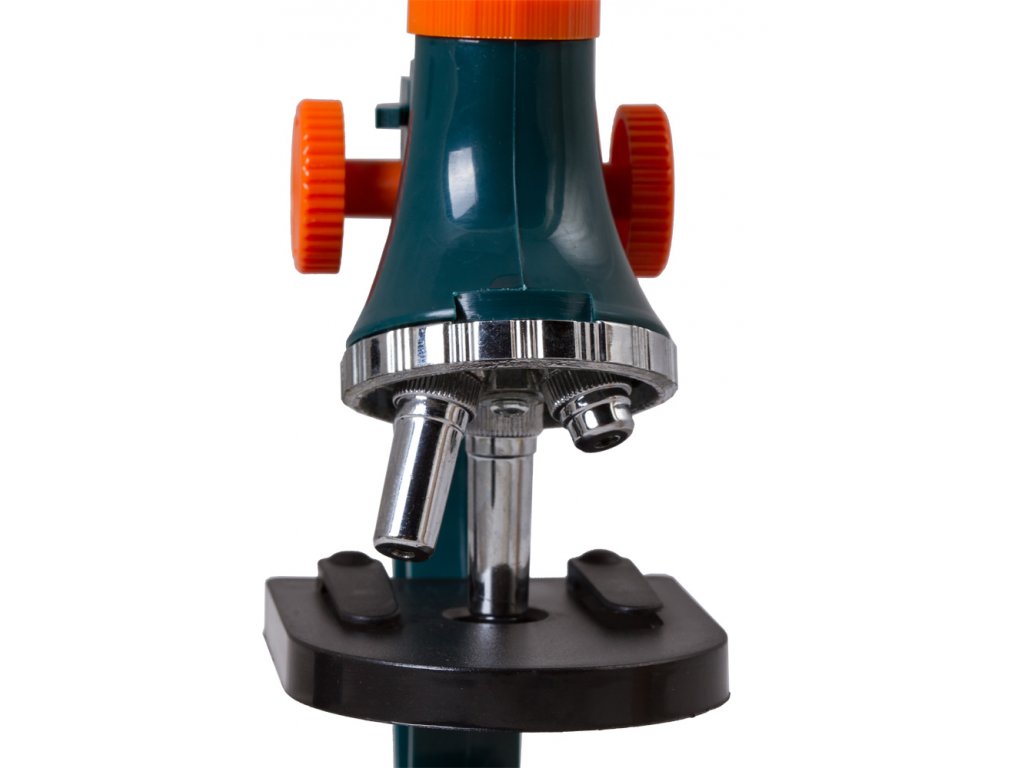 Detský mikroskop, vám umožňuje pozorovanie priehľadných mikroskopických preparátov, napríklad tenké plátky rastlín, alebo srsť vašich domácich miláčikov. Je vybavený tromi objektívmi, ktoré ponúkajú zväčšenie 75x, 300x a 900x. Zväčšenie zmeníte jednoducho tak, že pootočíte revolverovou hlavicou a vymeníte objektívy.