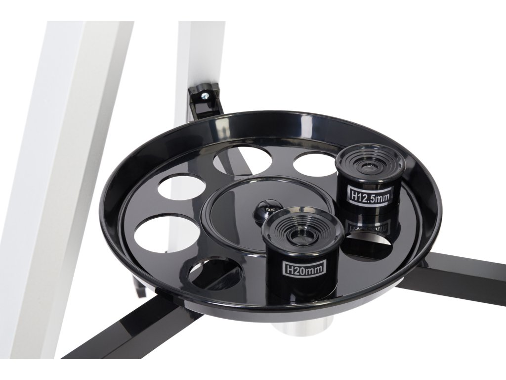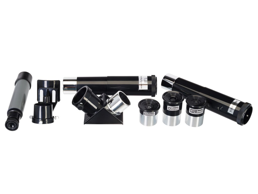 Obsah balenia - Teleskop Levenhuk LabZZ TK60Montáž sa inštaluje na praktický hliníkový statív, ktorý disponuje miestom pre vloženie priehradky na príslušenstvo. Výška statívu je nastaviteľná a plne prispôsobivá výške pozorovateľa. Sada obsahuje všetko príslušenstvo, nemusíte si robiť starosti s dokupovaním ďalšieho. Súčasťou balenia je aj praktické puzdro, do ktorého je možné detský hvezdársky ďalekohľad uložiť aj s príslušenstvom a umožňuje tak pohodlné prenášanie a skladovanie.