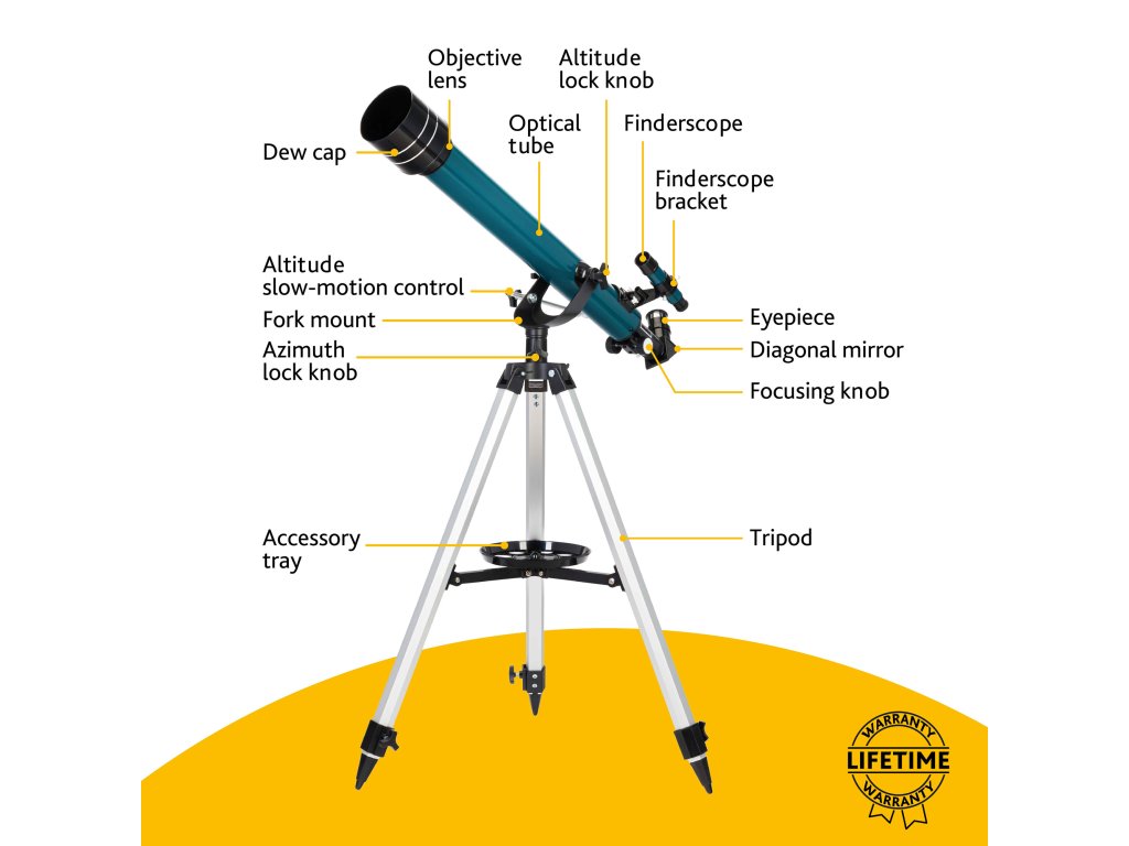 Ideálnou voľbou pre deti, žiakov či študentov, ktorí sa zaujímajú o astronómiu, je tento detský hvezdársky ďalekohľad Levenhuk LabZZ TK60. Vhodný je na pozorovanie Mesiaca a pozemských objektov. Dodáva sa spolu s príslušenstvom, ktoré budete potrebovať na pozorovanie nočnej oblohy. Montáž a obsluha detského teleskopu je extrémne jednoduchá a nevyžaduje žiadne špeciálne schopnosti. Teleskop disponuje ohniskovou vzdialenosťou o veľkosti 700 mm a možnosťou zväčšenia 120x.